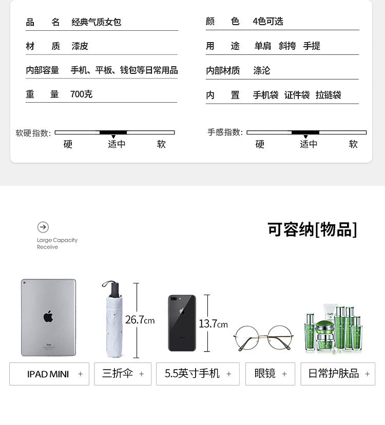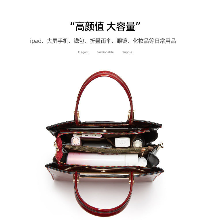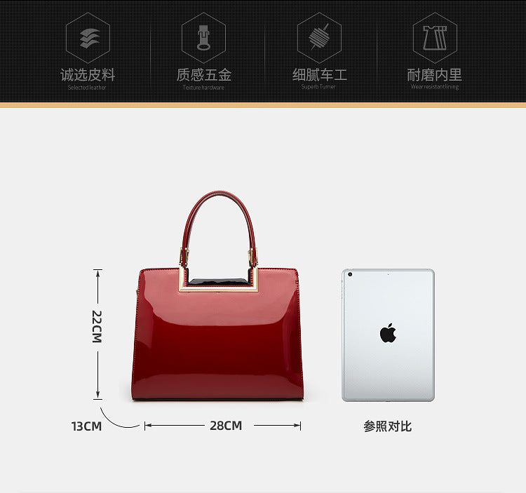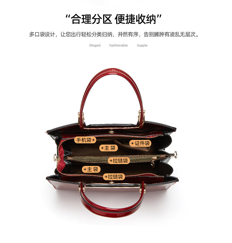 2023 Patent Leather Women's Bag Middle-aged Mom New Simple Fashion Trend Handheld Women's Bag Shoulder Women's Bag One Piece Dropshipping