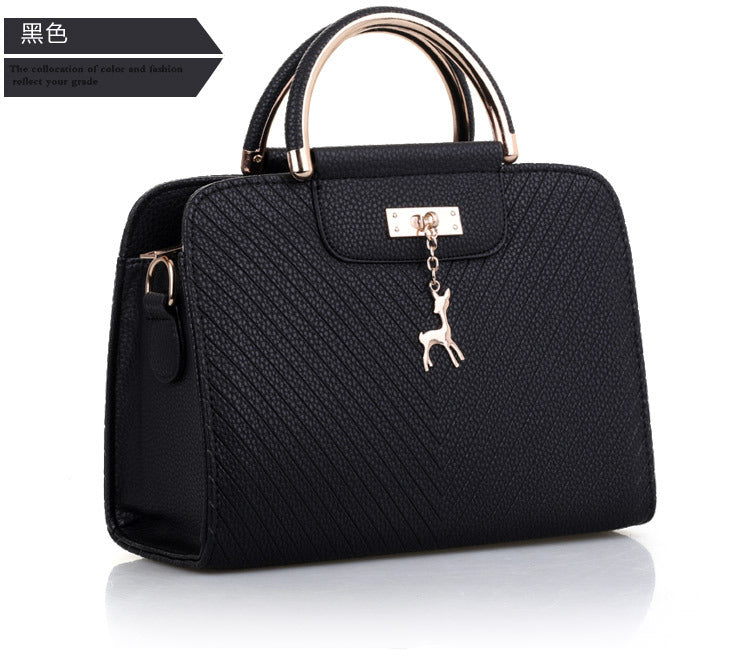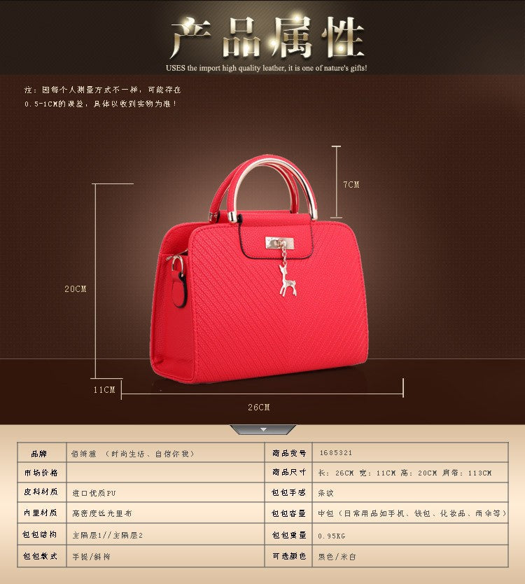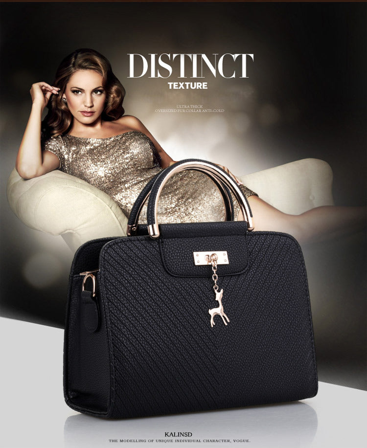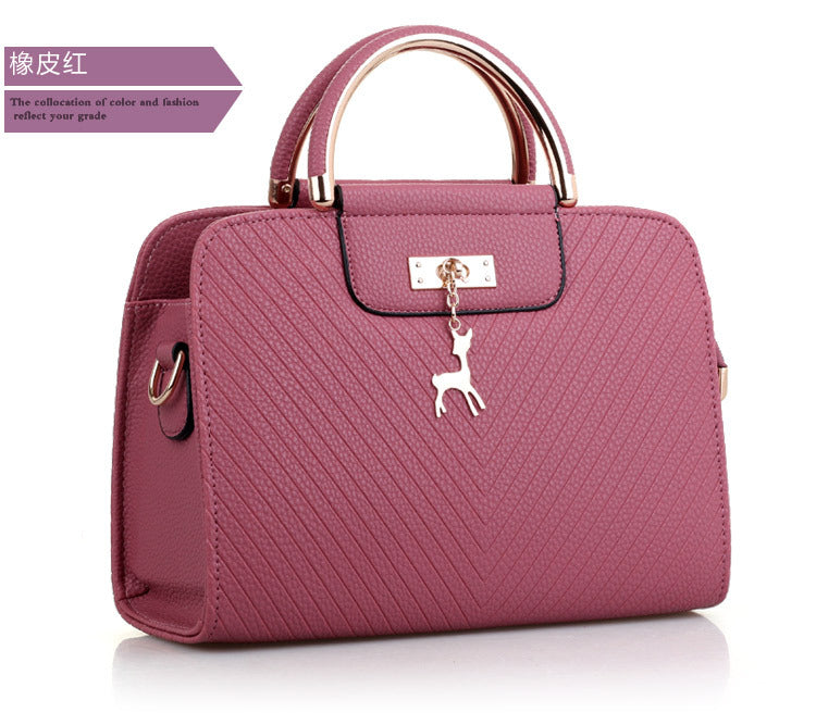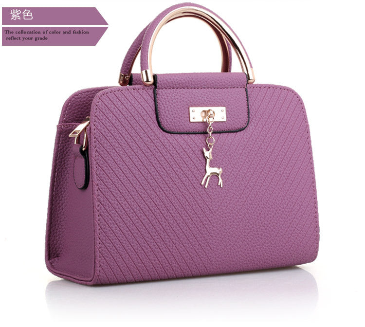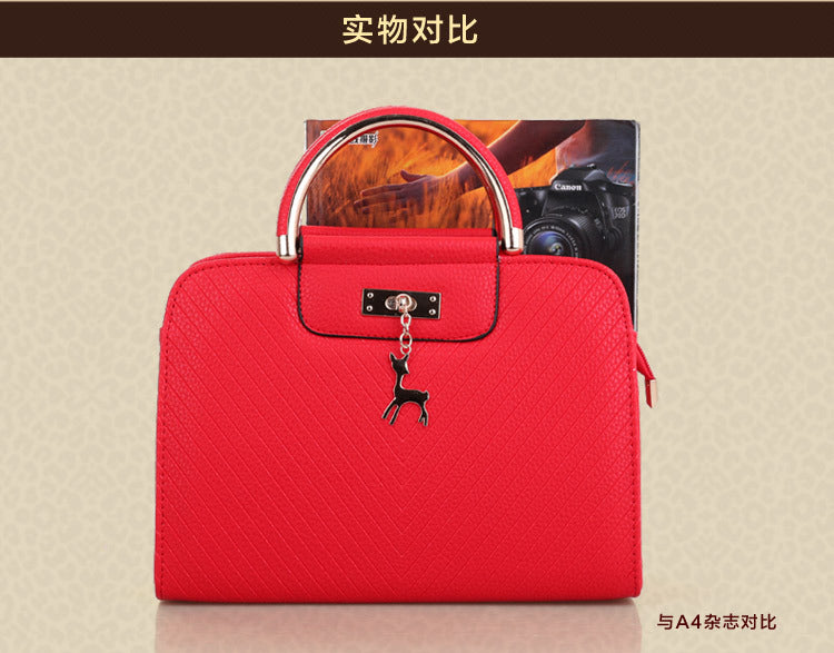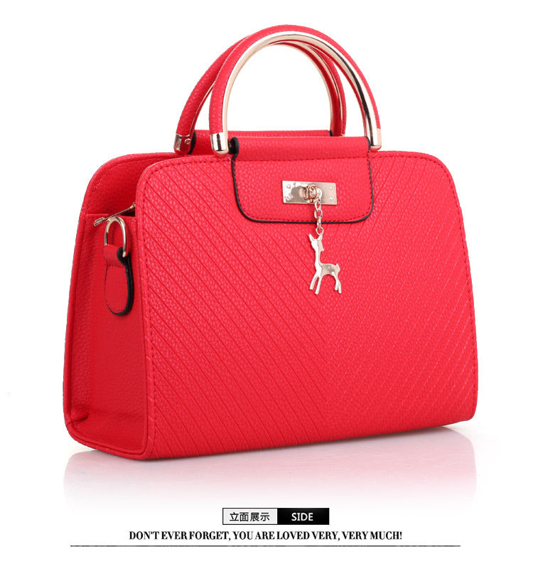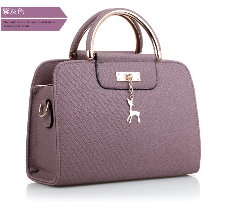 2024 Spring Temperament Women's Handbag Corrugated Fawn Pendant Cute Shoulder Bag Fashionable College Style Crossbody Bag