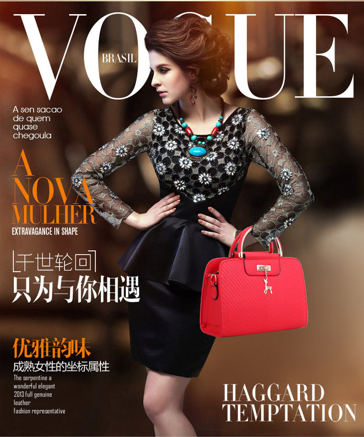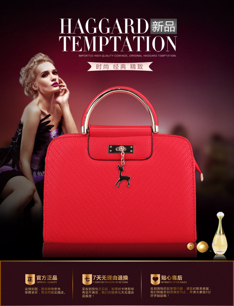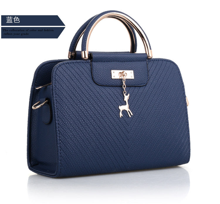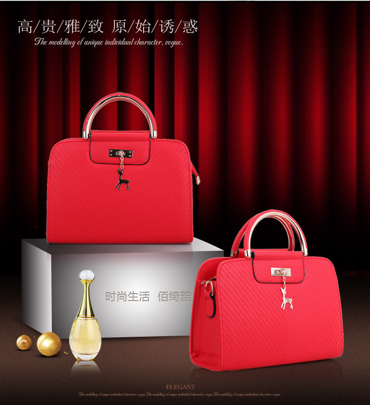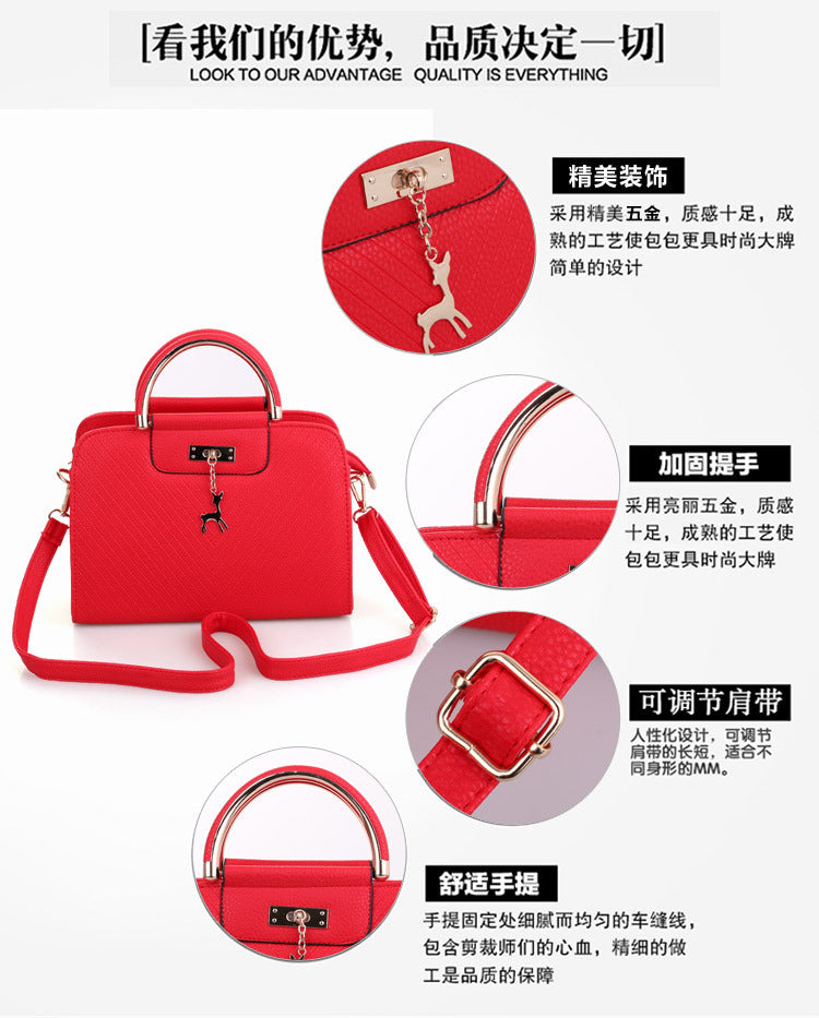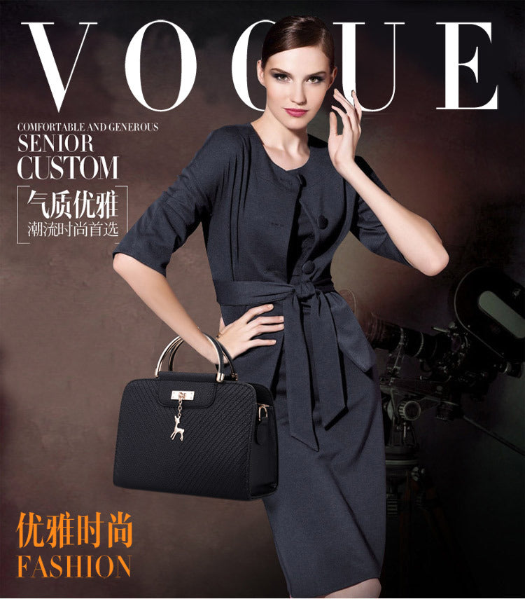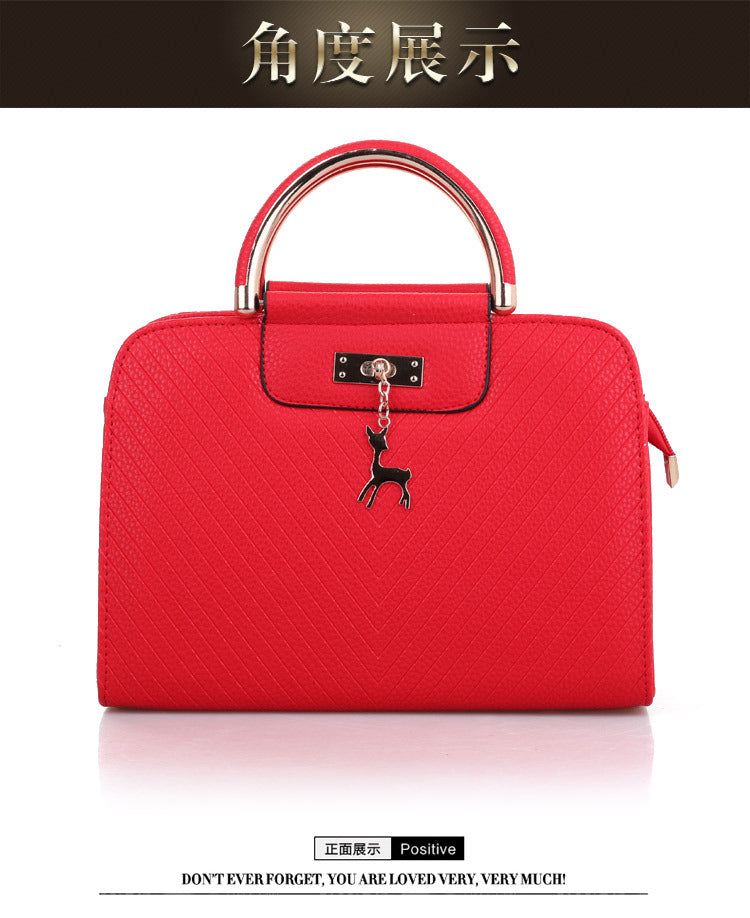 2024 Spring Temperament Women's Handbag Corrugated Fawn Pendant Cute Shoulder Bag Fashionable College Style Crossbody Bag