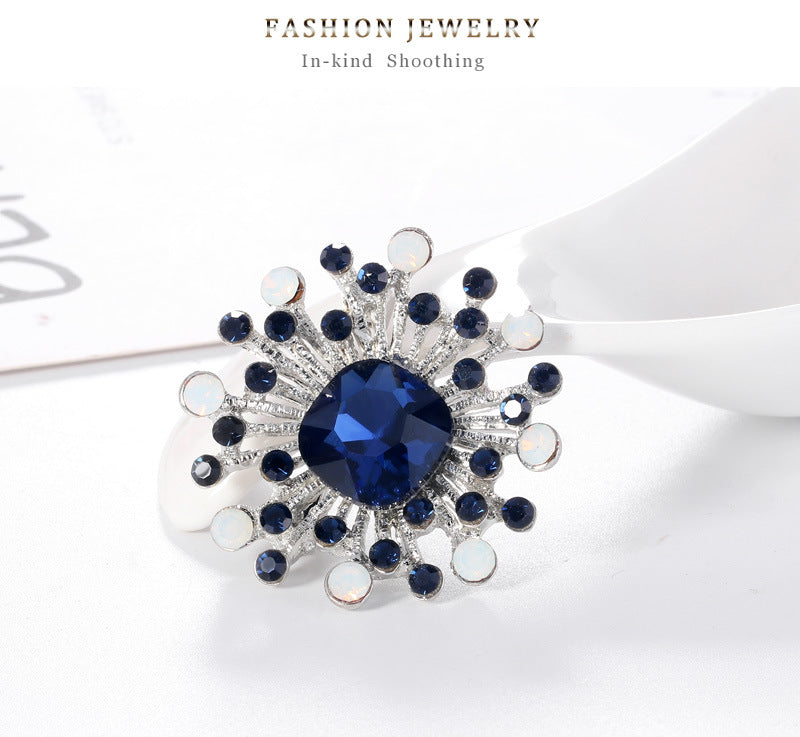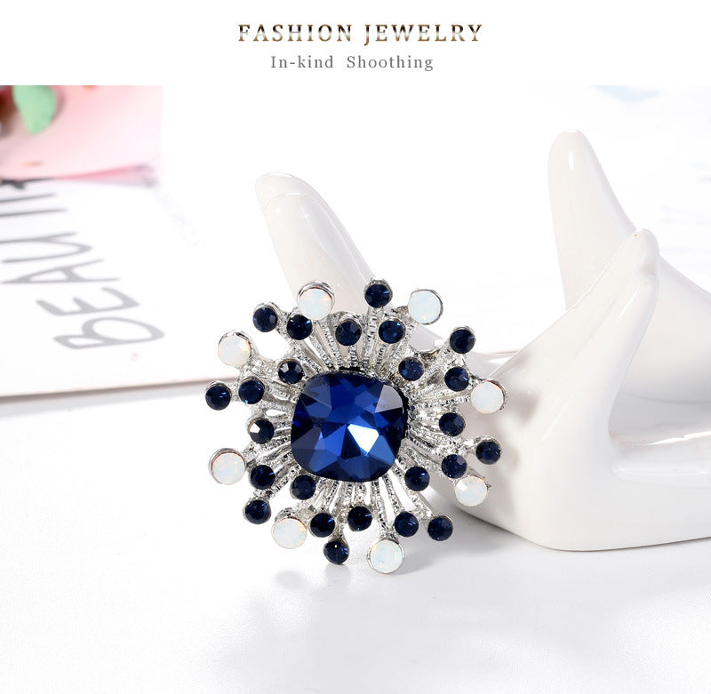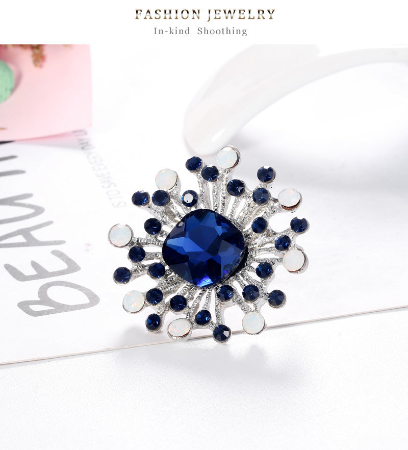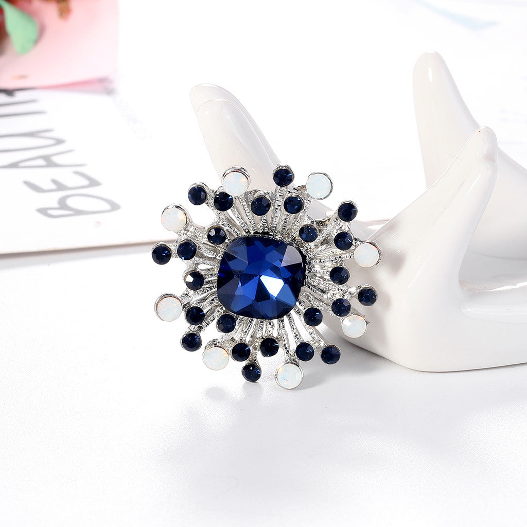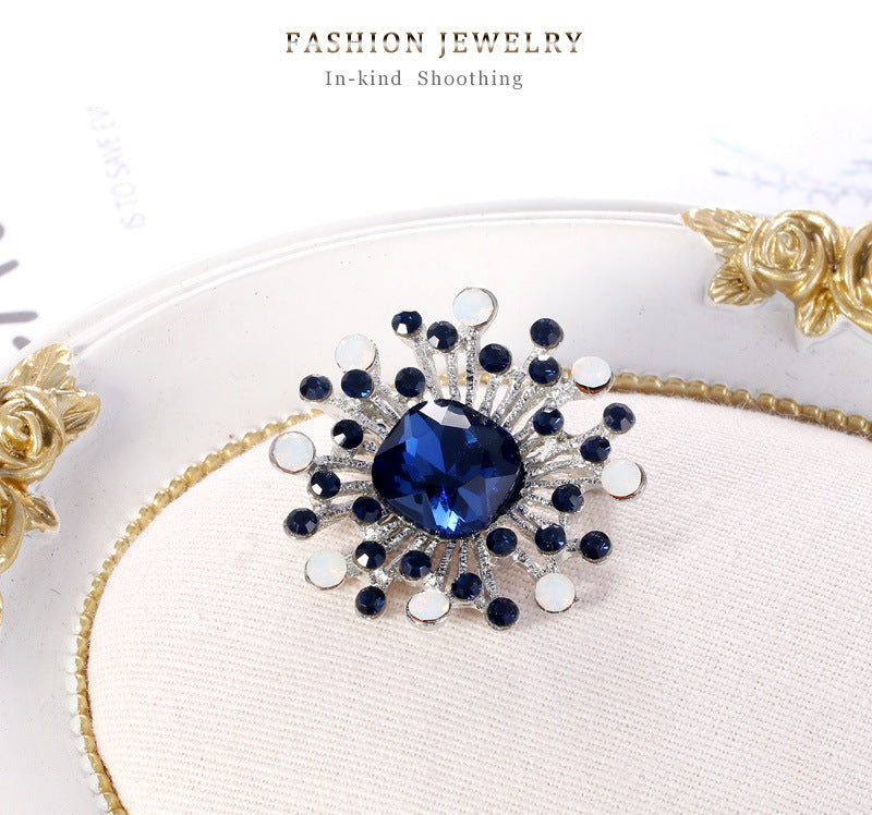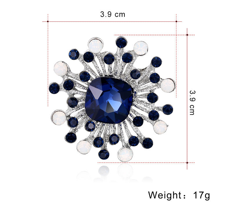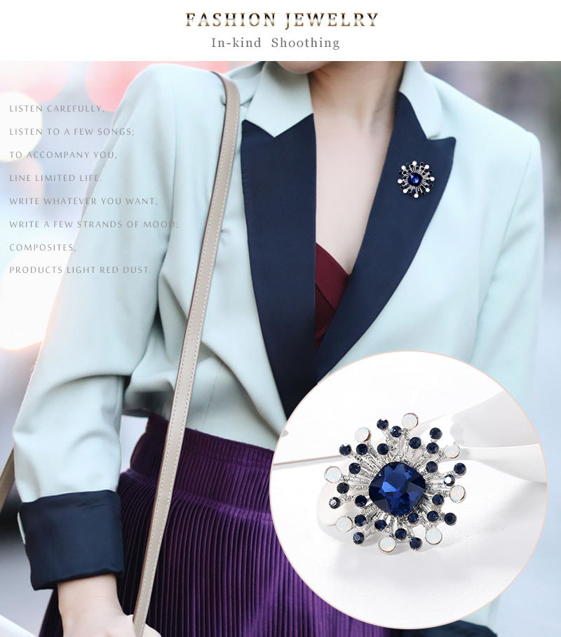 Danrun European and American geometric blue retro brooch, simple and elegant fashionable alloy diamond corsage clothing accessories wholesale