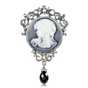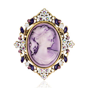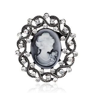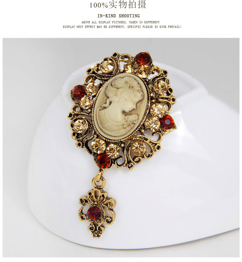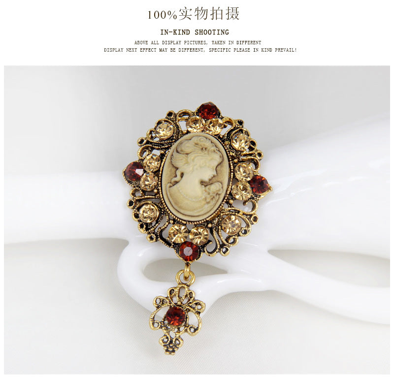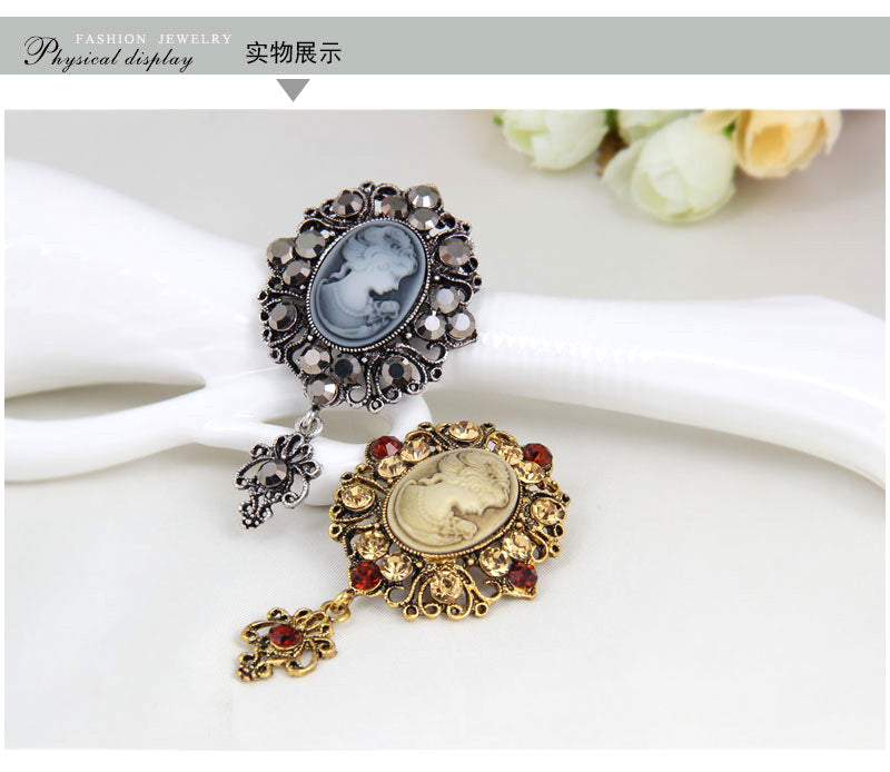 European and American jewelry brooch, retro beauty head crystal brooch, alloy diamond accessories pin wholesale