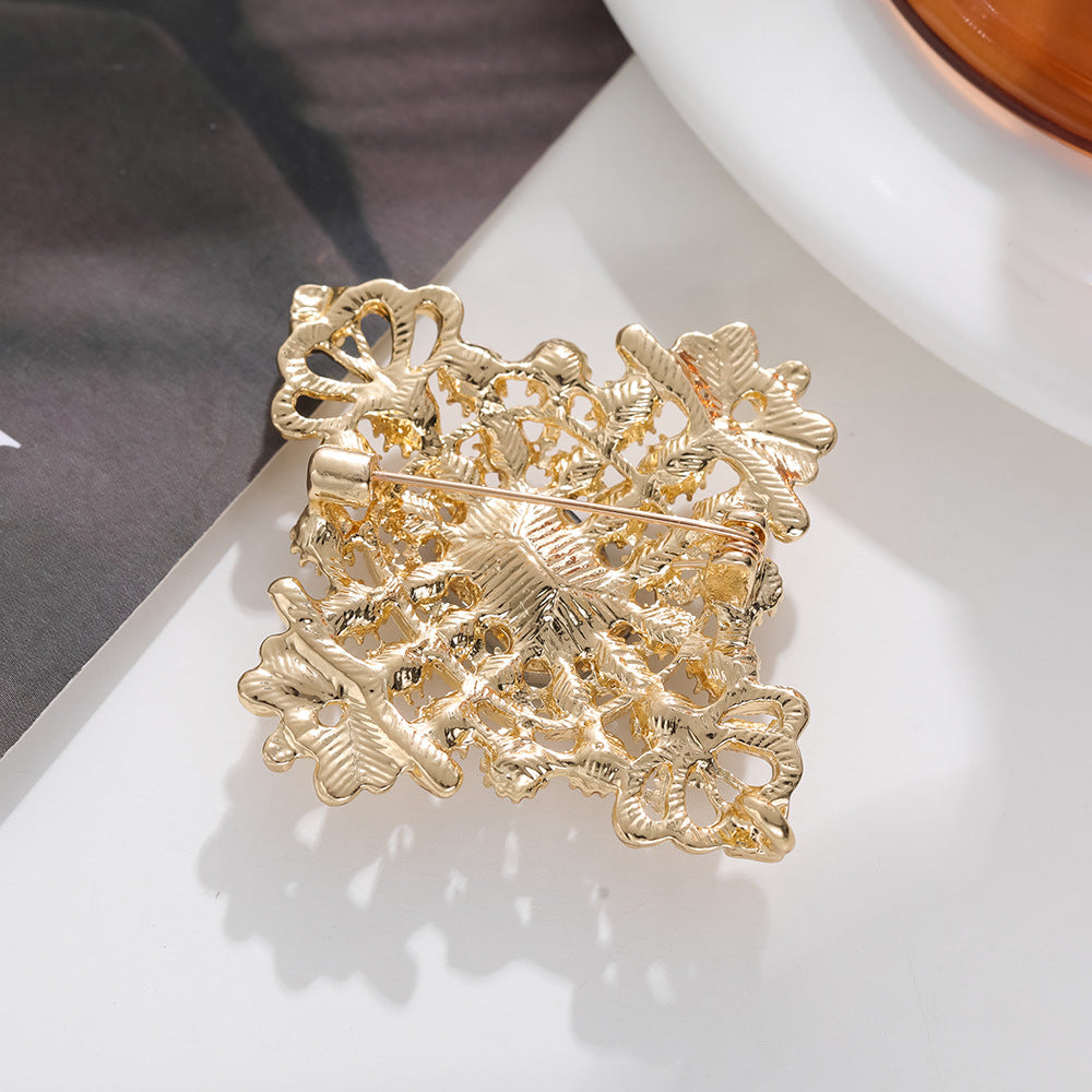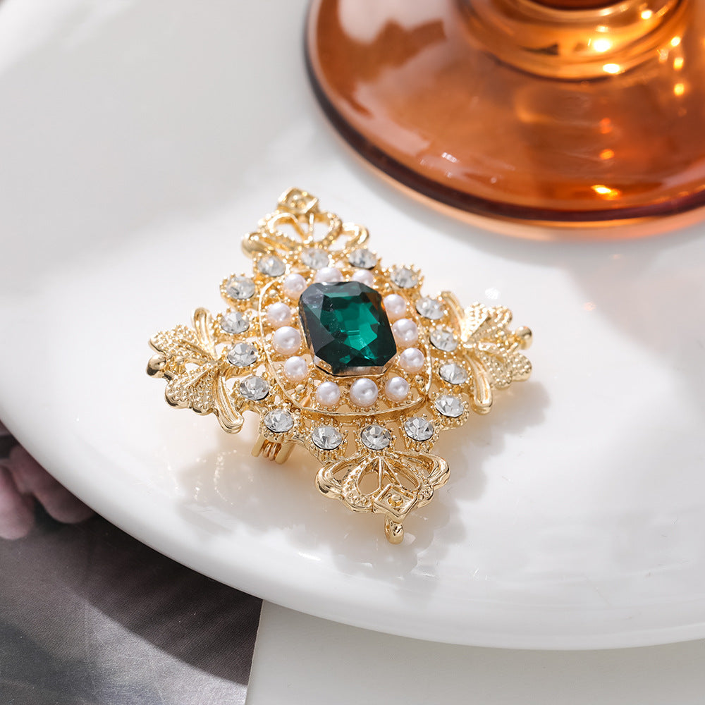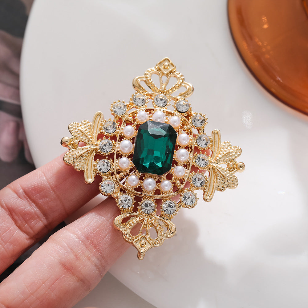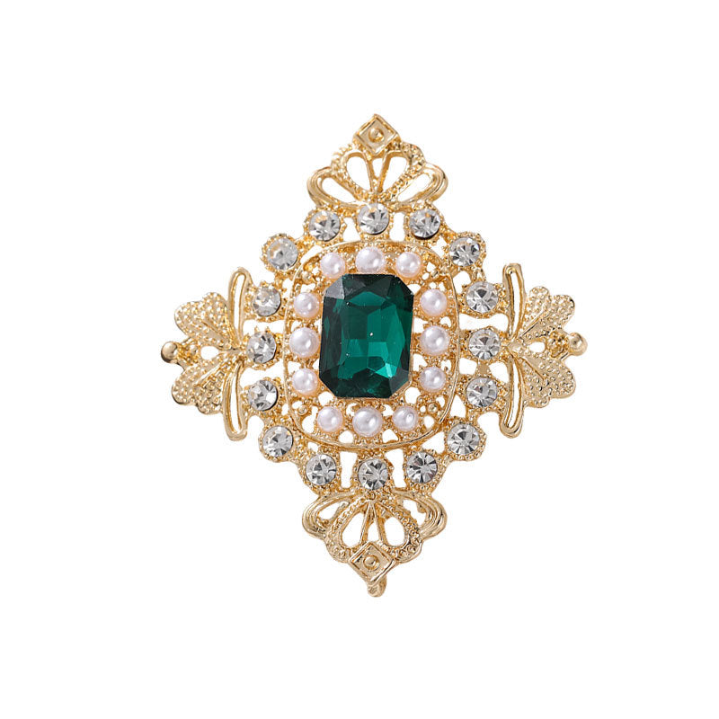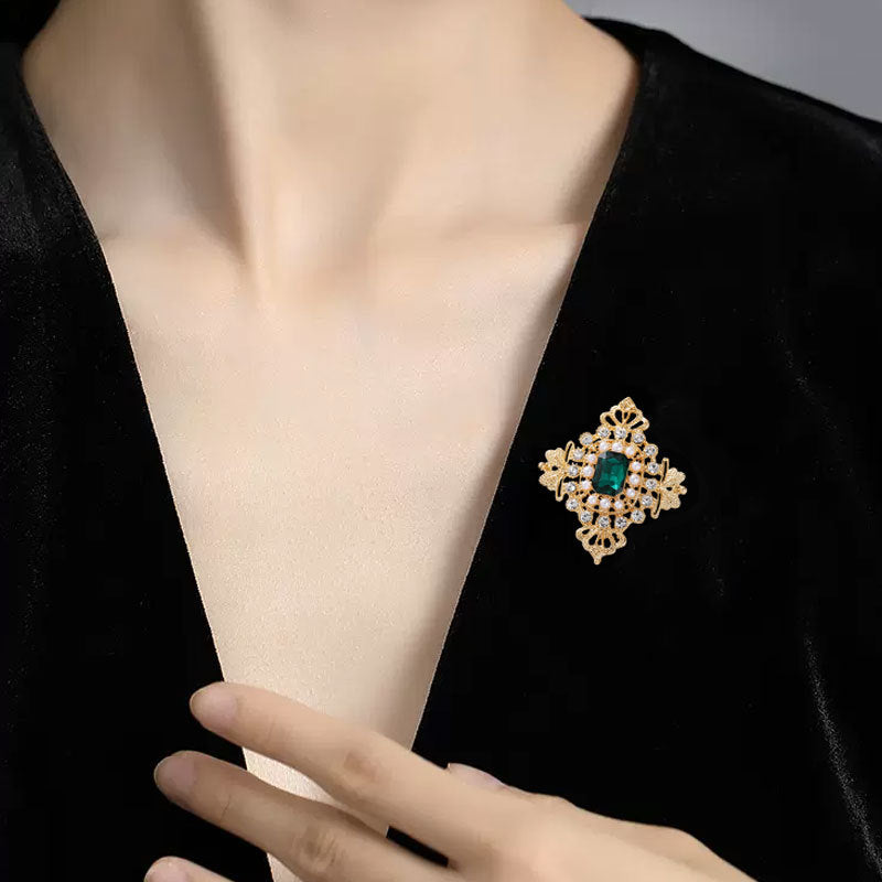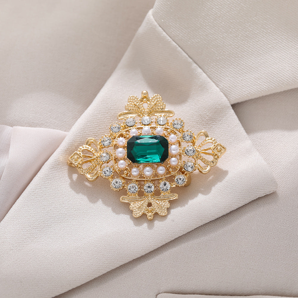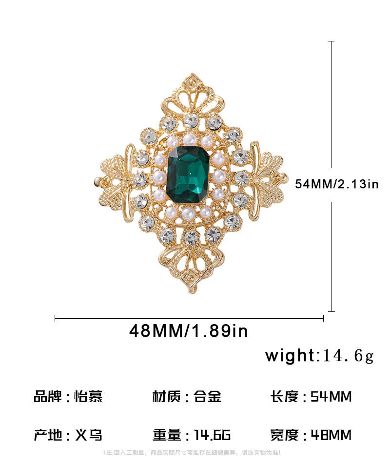 European palace style emerald brooch, retro pearl and gem embellishment suit accessories, light luxury temperament brooch, brooch