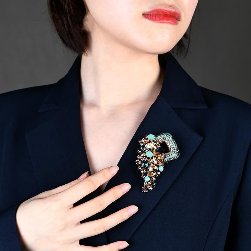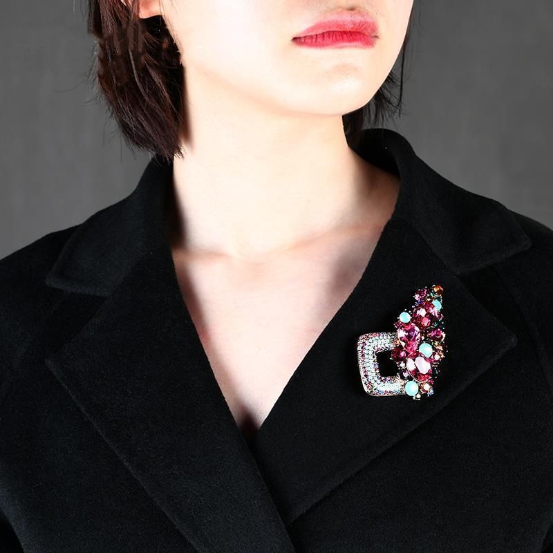 Fashionable diamond-encrusted brooches, creative personality, simple diamond-encrusted colorful brooches, temperament coat accessories, wholesale in stock