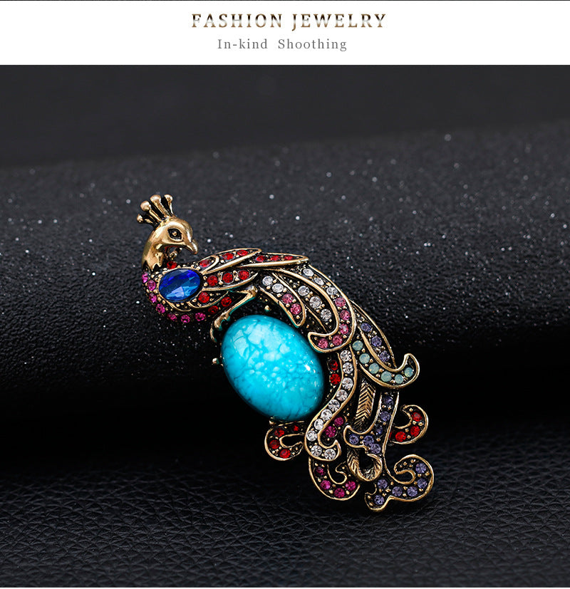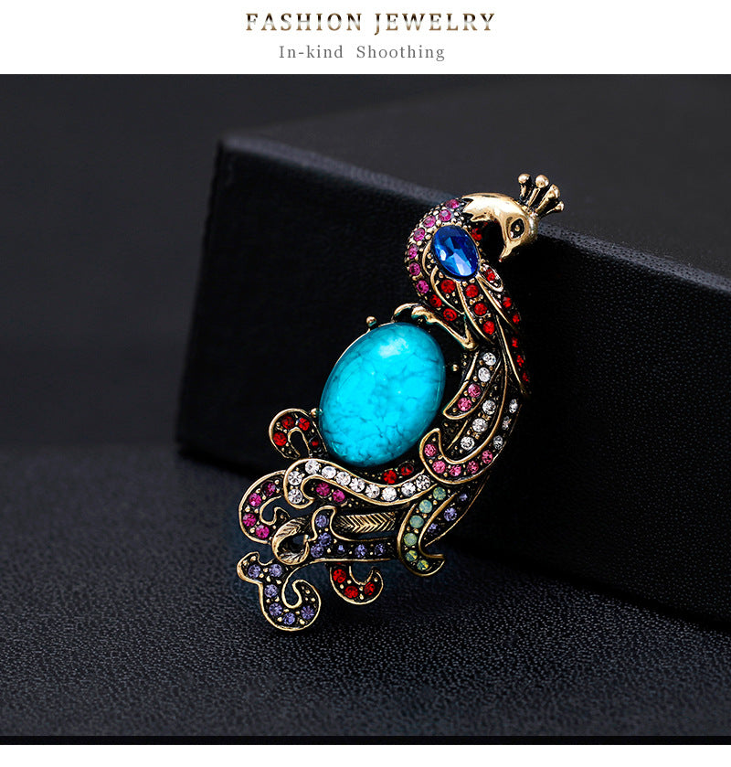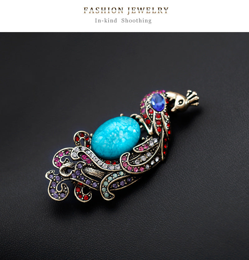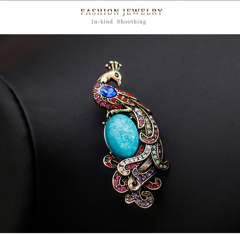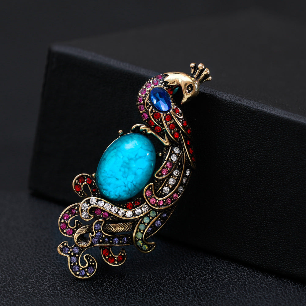 Fashionable Peacock Brooch European and American Elegant Retro Personality Animal Lady Corsage Ready in Stock