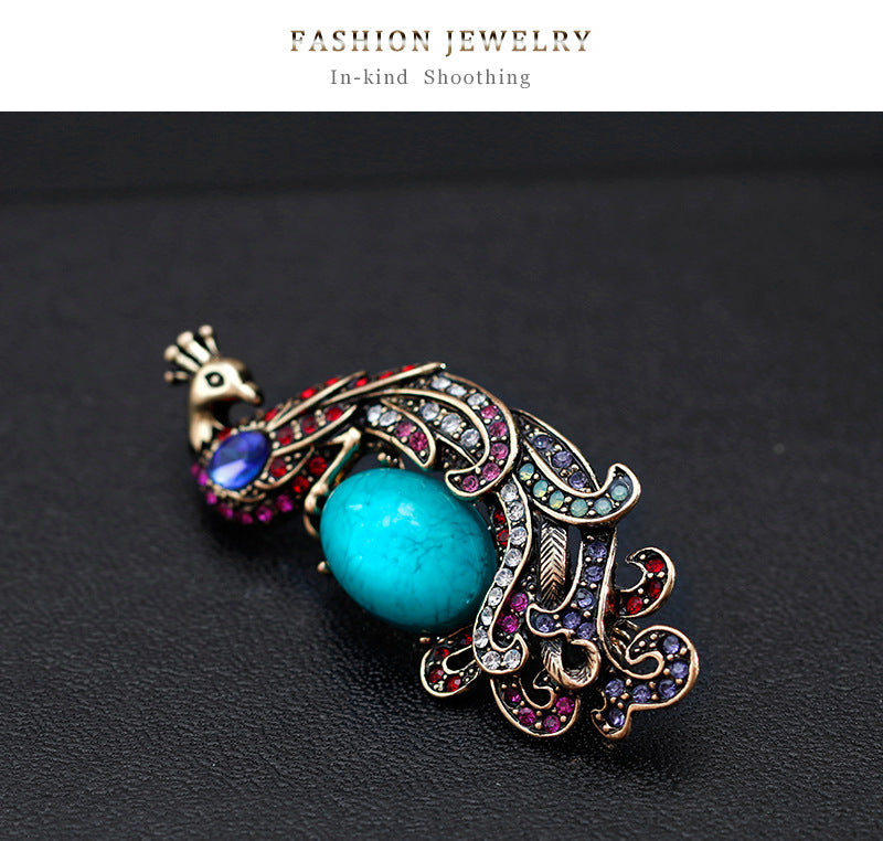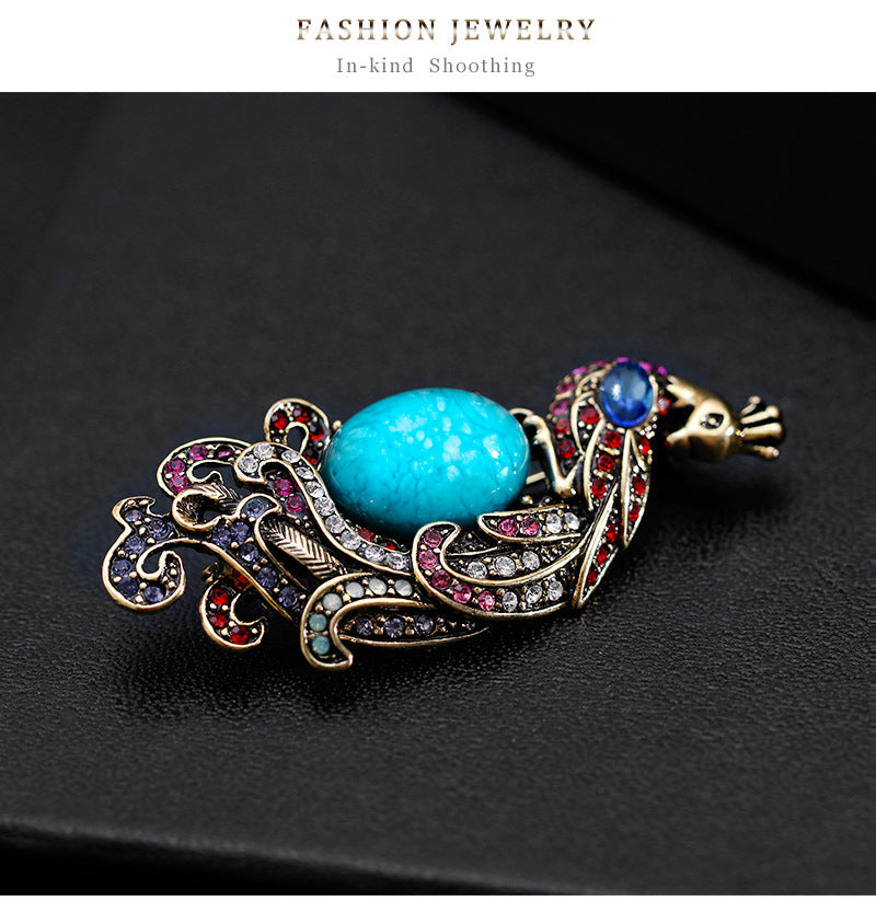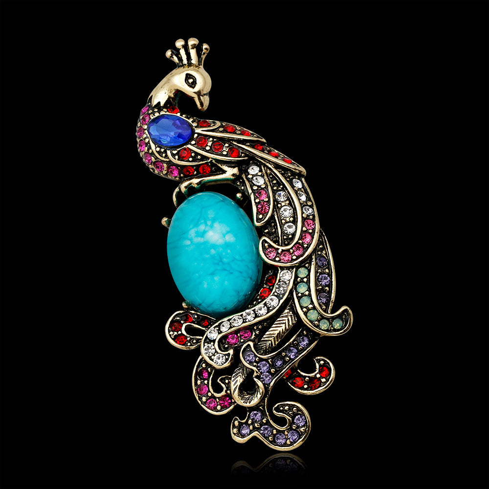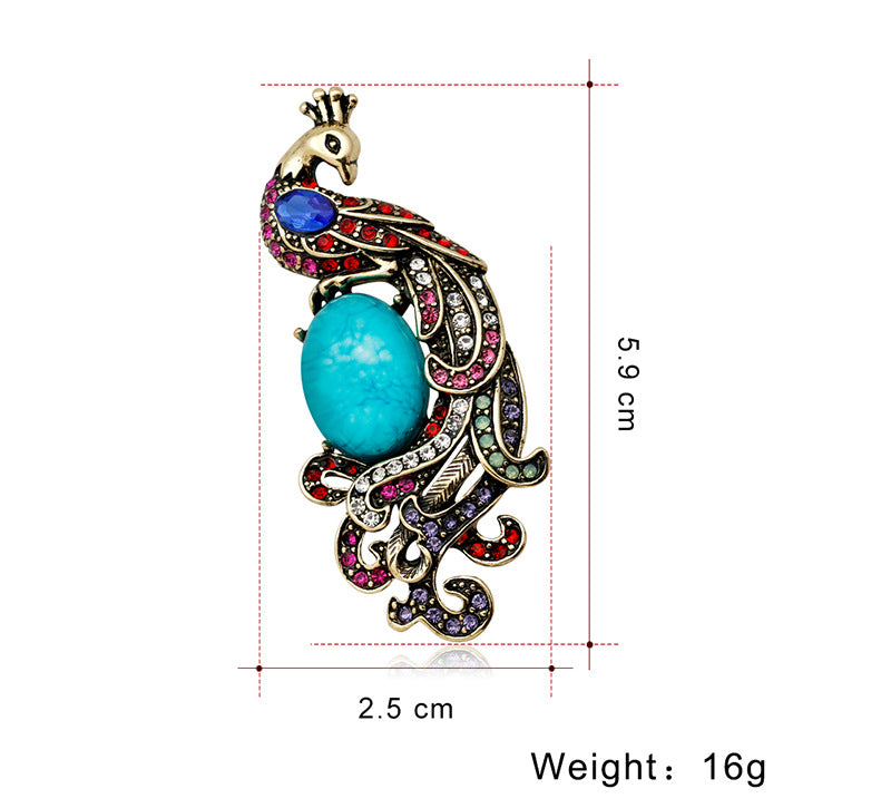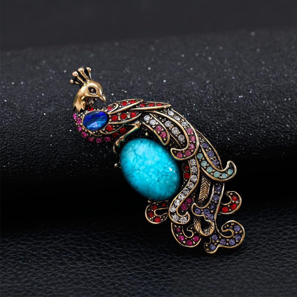 Fashionable Peacock Brooch European and American Elegant Retro Personality Animal Lady Corsage Ready in Stock
