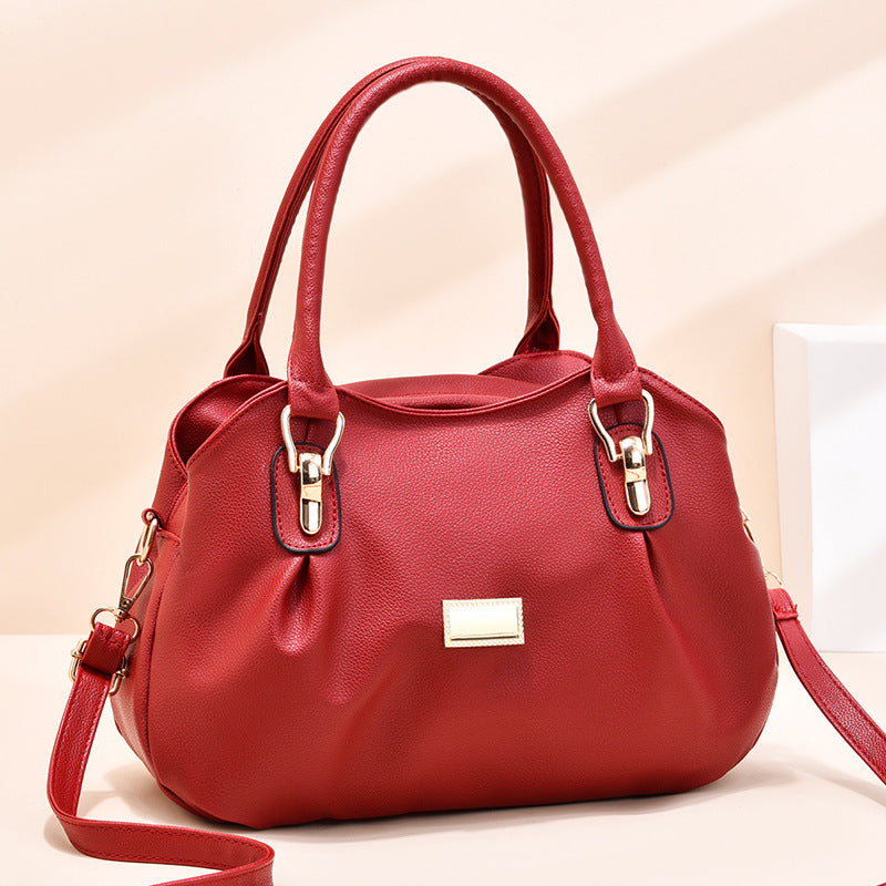 Middle-aged women's bags soft leather women's bags 2024 new handbags middle-aged and elderly women's bags mom bags single shoulder crossbody bag