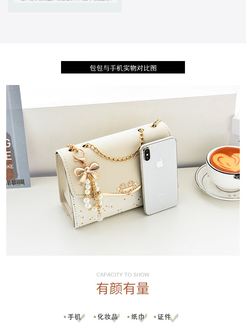 color: Off-white (without pendant), black (without pendant), white (without pendant), red (without pendant), off-white (with pendant), black (with pendant), white (with pendant), red ( with pendant), lake blue (without pendant), lake blue (with pendant)style: fresh and sweetItem number: #888Material: PUTrendy styles of bags: Small square bagBag size: Smallpopular elements: sequins,...