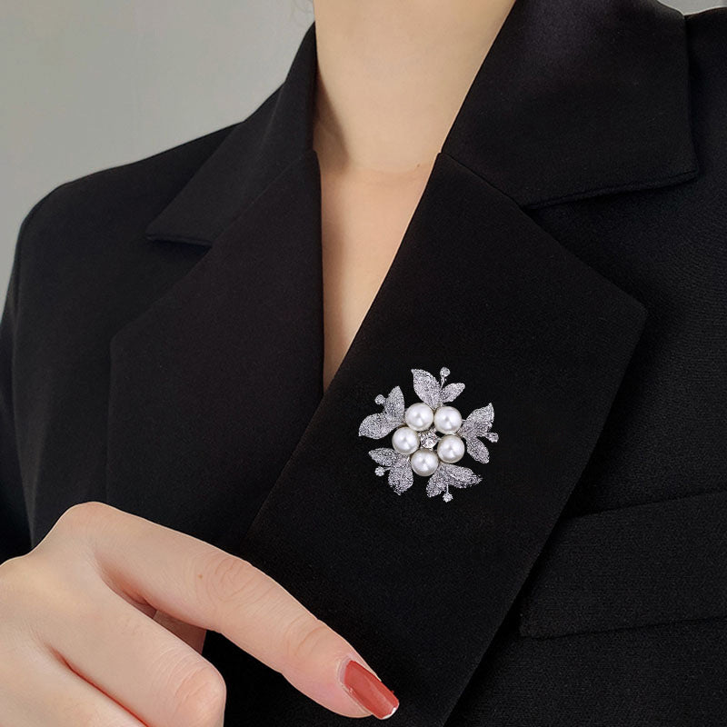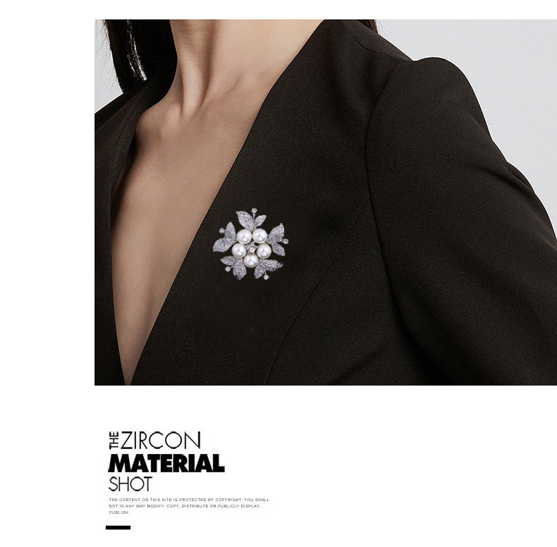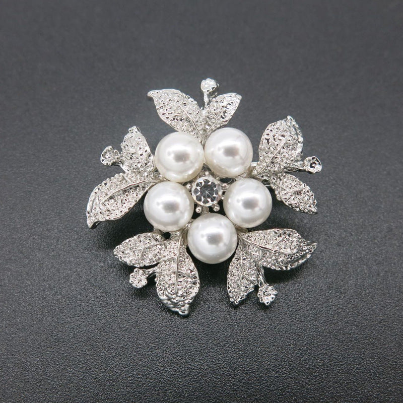 Pearl brooch, European and American jewelry, high-end clothing brooch, diamond-encrusted flower, rhinestone corsage, clothing accessories brooch, wholesale