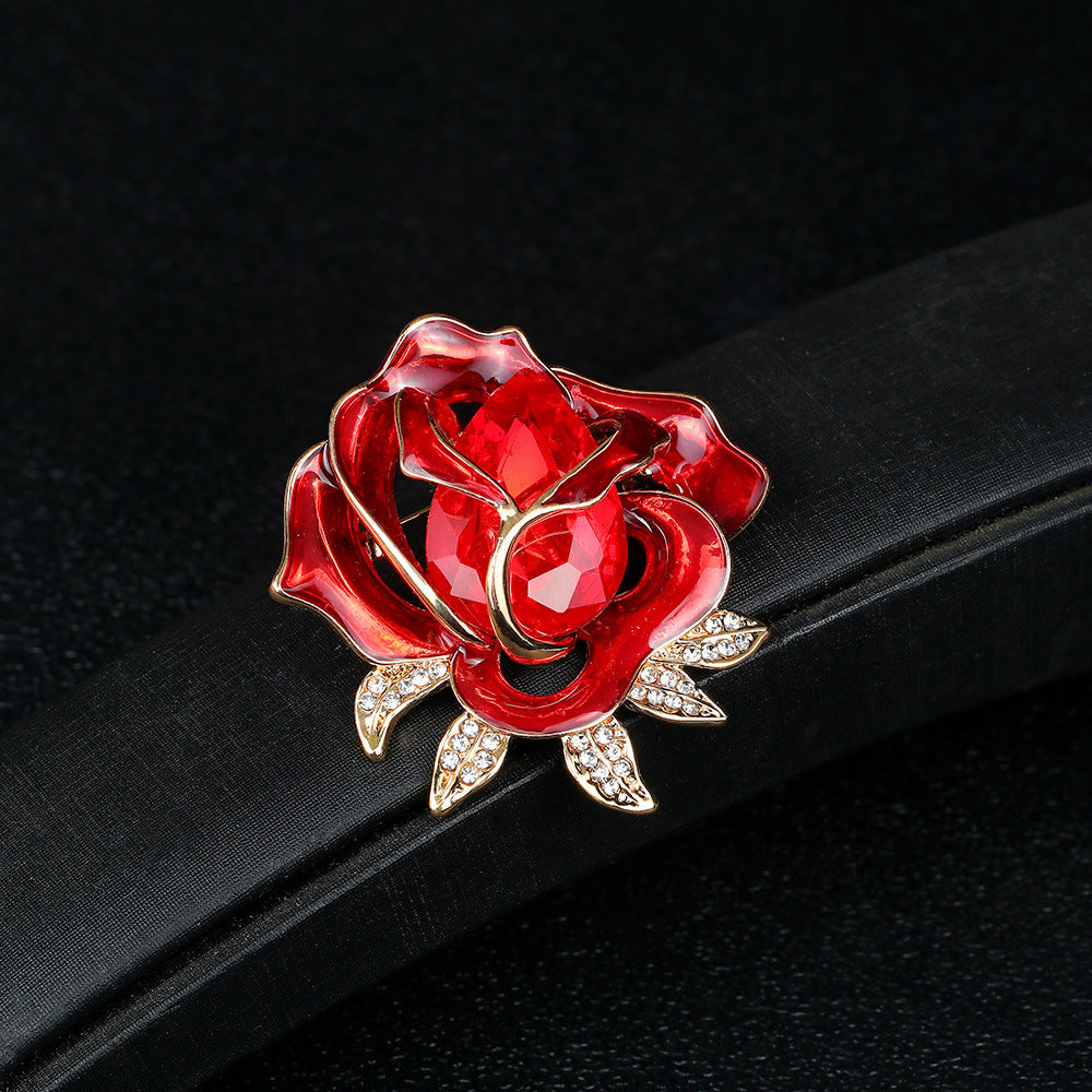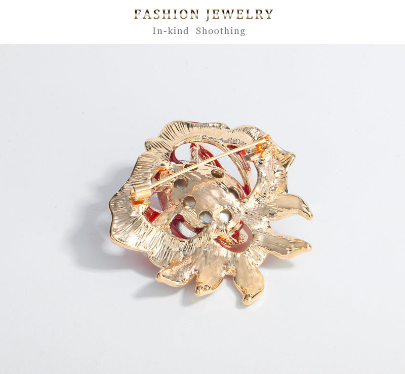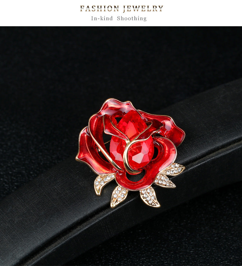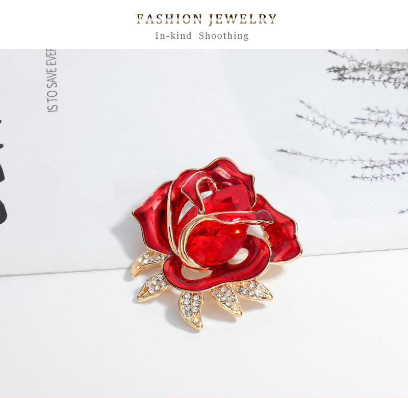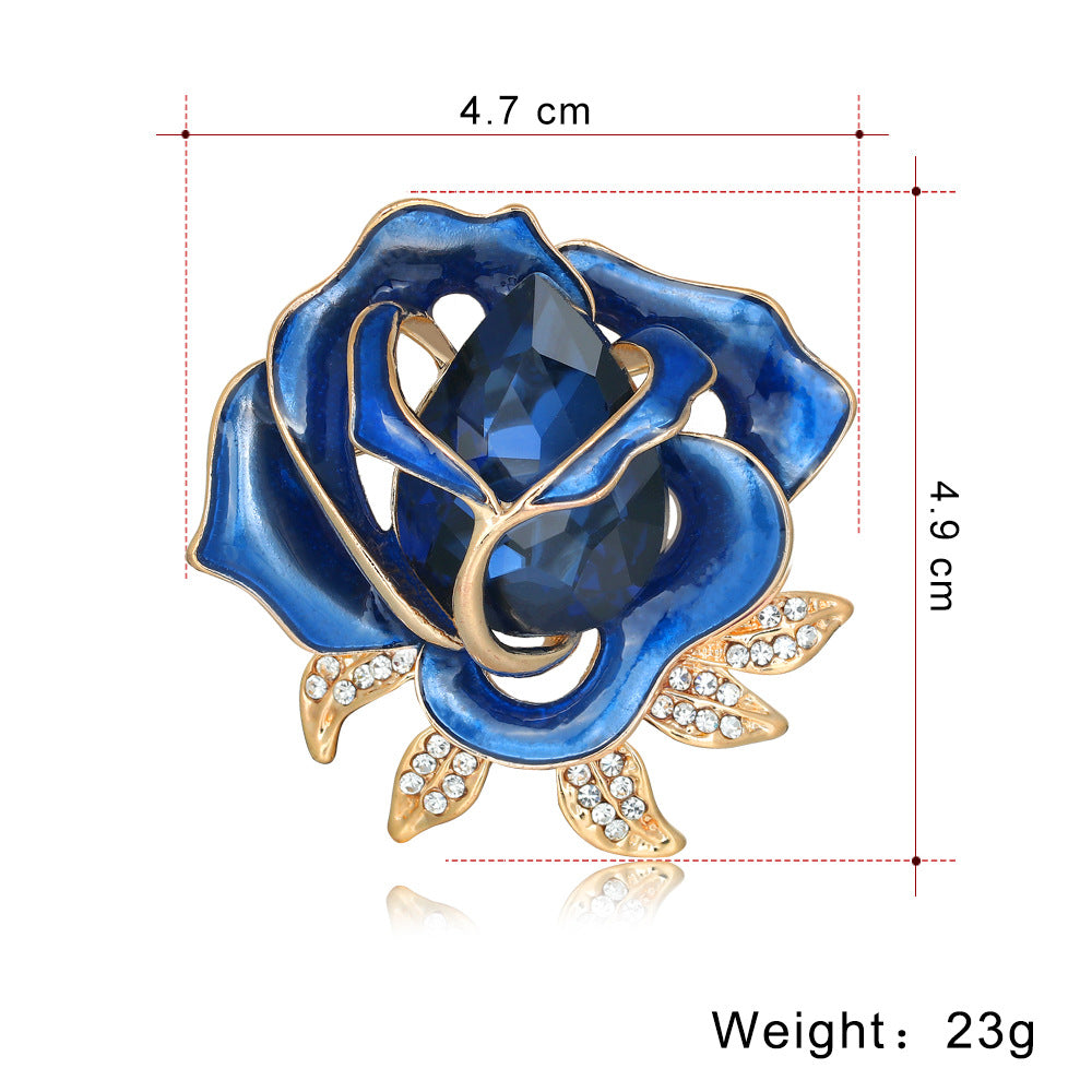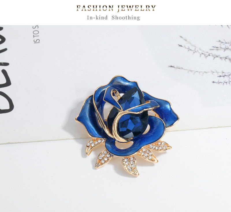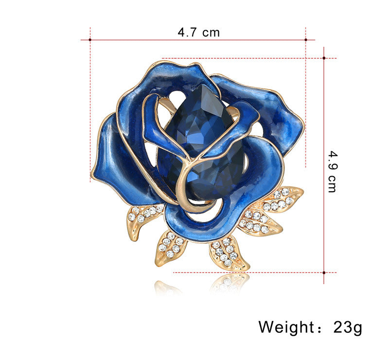 Retro new crystal rose brooch dripping oil rhinestone flower coat corsage anti-exposure pin accessories for women