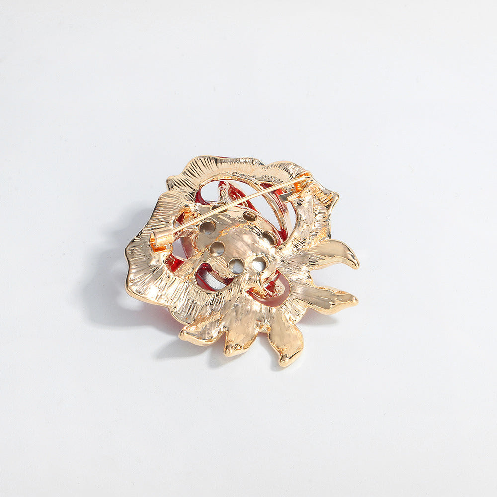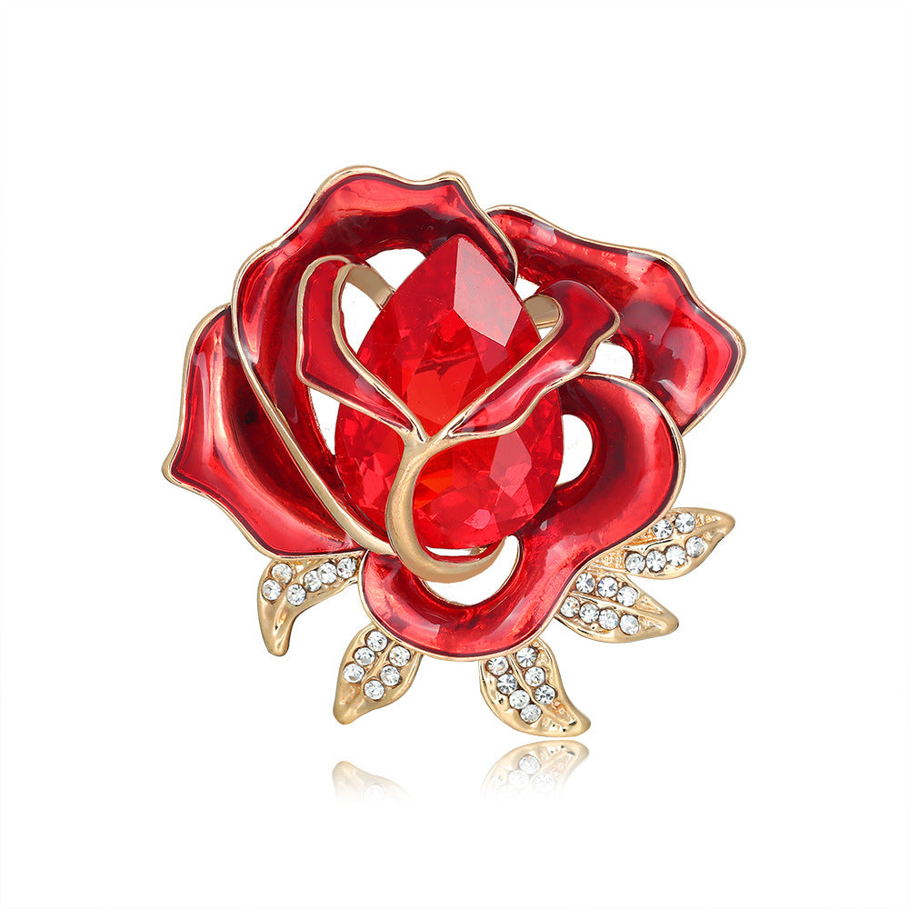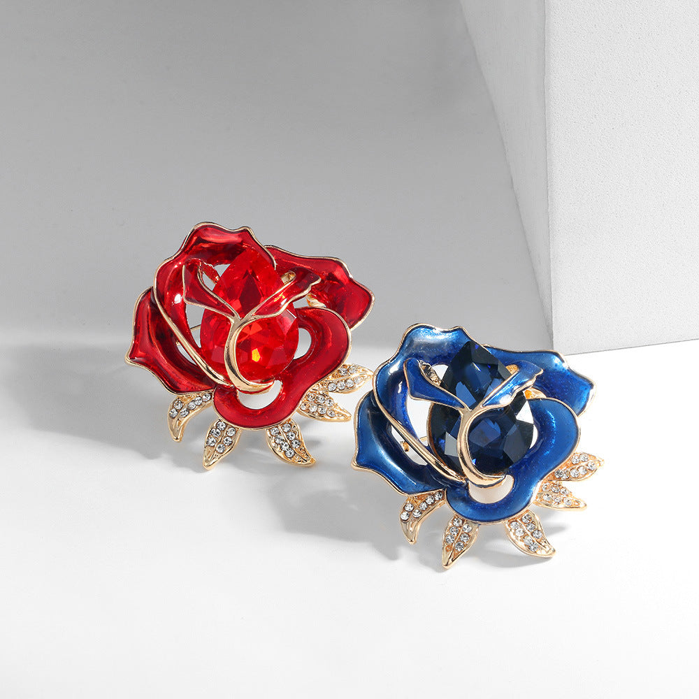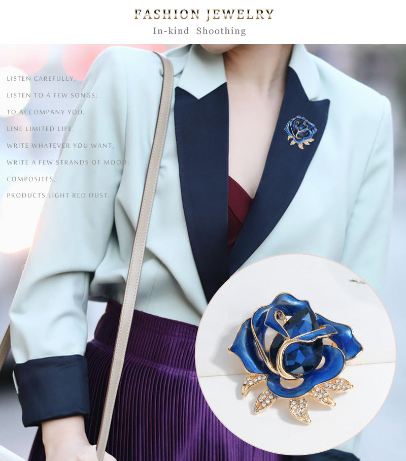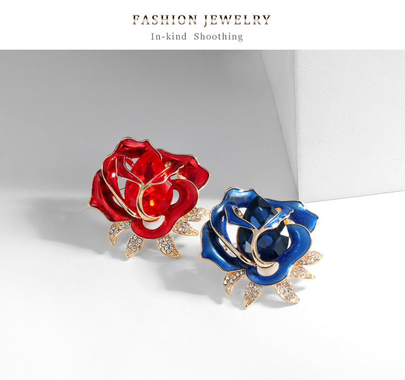 Retro new crystal rose brooch dripping oil rhinestone flower coat corsage anti-exposure pin accessories for women