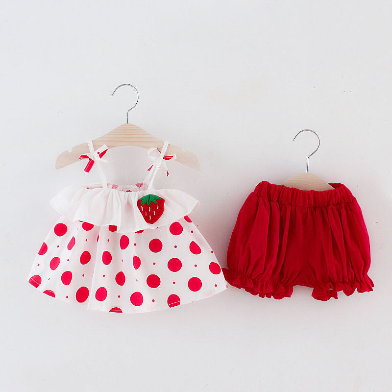 0-4 years old girl summer skirt suit 2 cotton wave point suspender skirt two-piece set 6 months baby solid color shorts