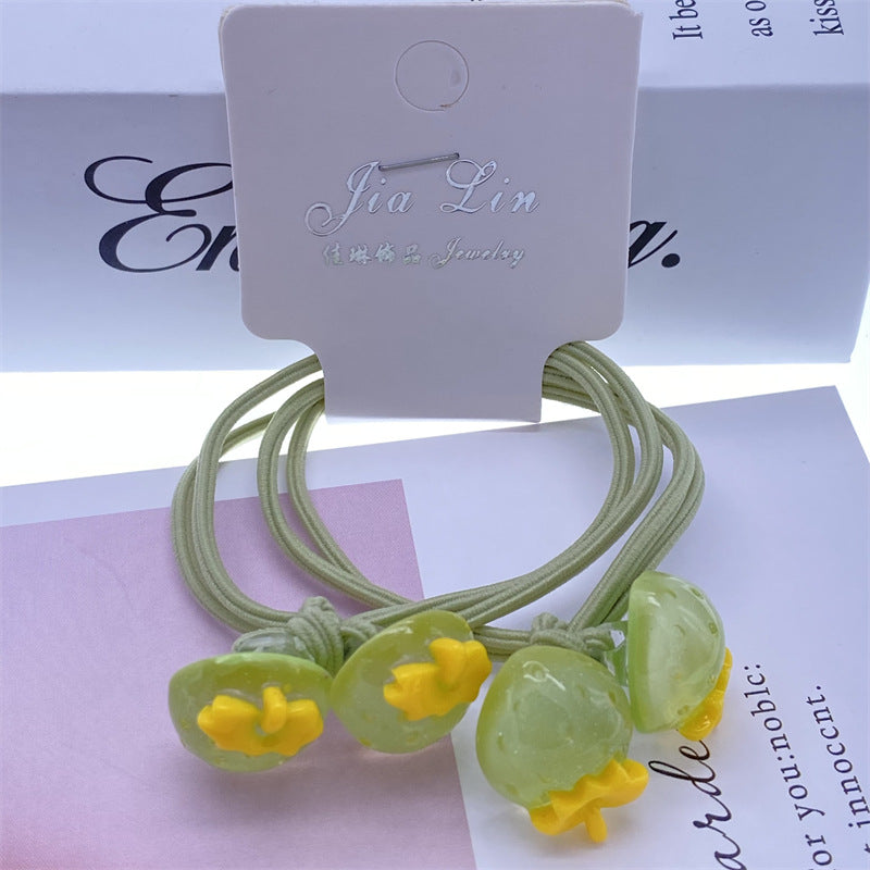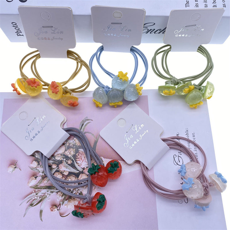 009 Order Card Two Transparent Strawberries Double Knotted Hair Ring Rubber Band Two Dollar Shop Hair Accessories Head Jewelry
