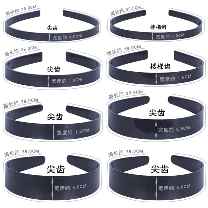 1.0cm CM toothed plastic bald buckle DIY hair hoop 10mm two rows of pin teeth plastic hair hoop black blank