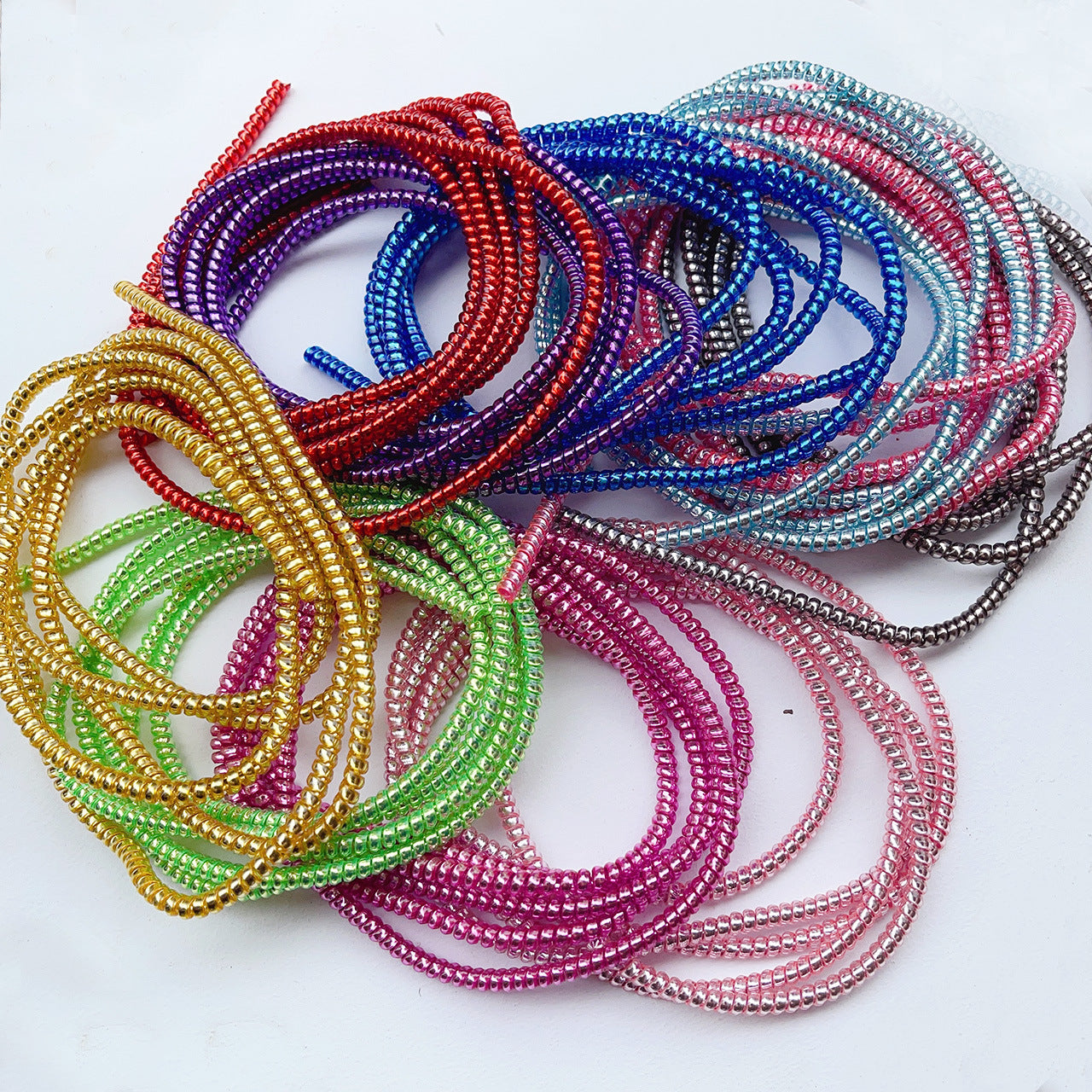 1.4m bright silver electroplating mobile phone data cable protection rope clip silver wire environmental protection TPU foreign trade winder protective cover