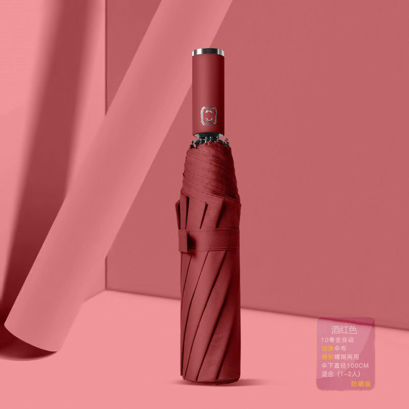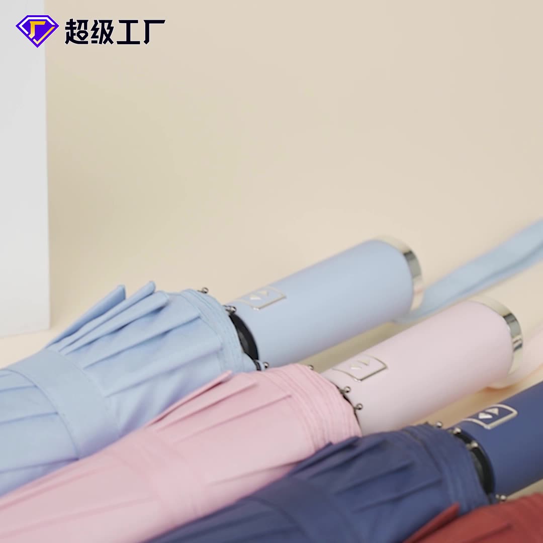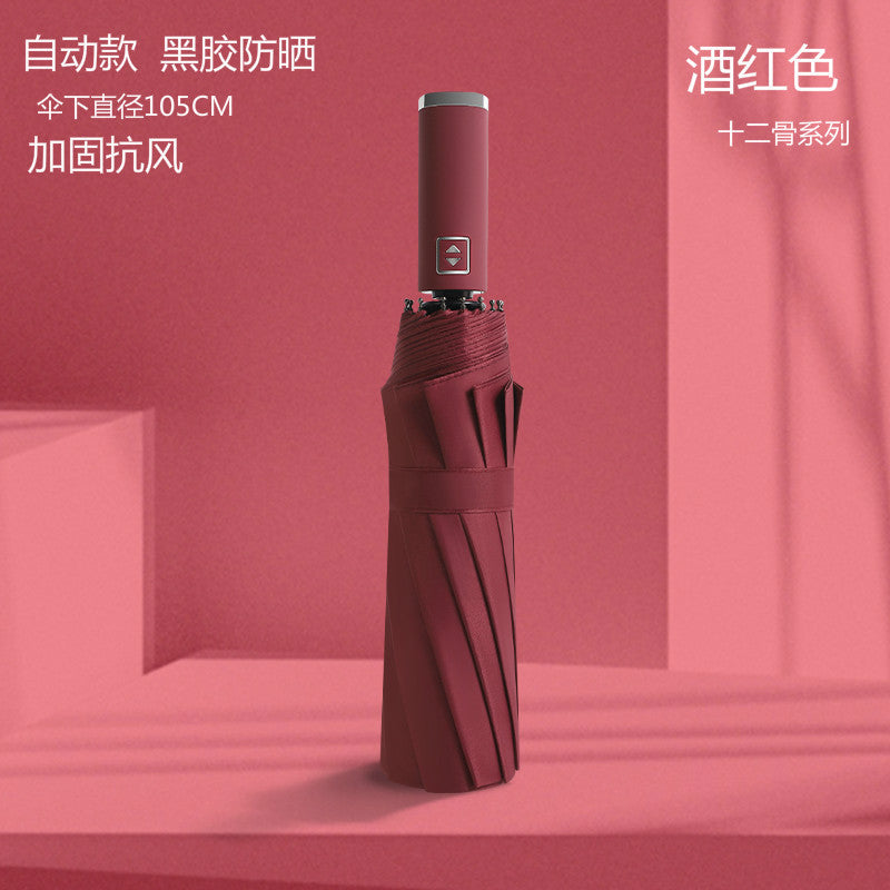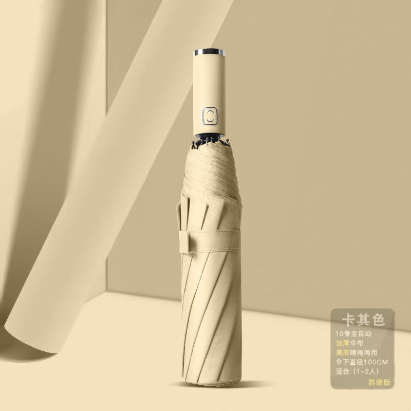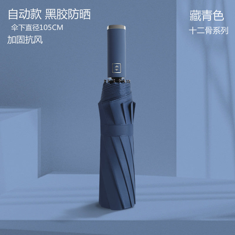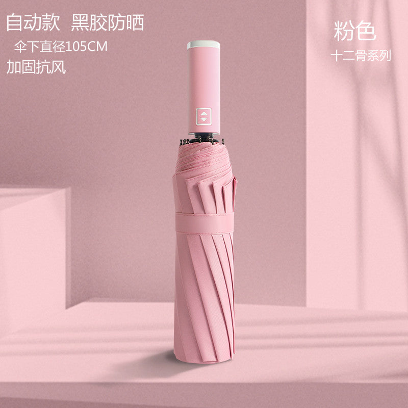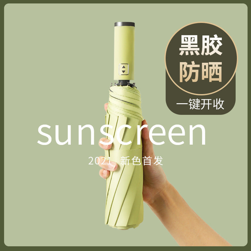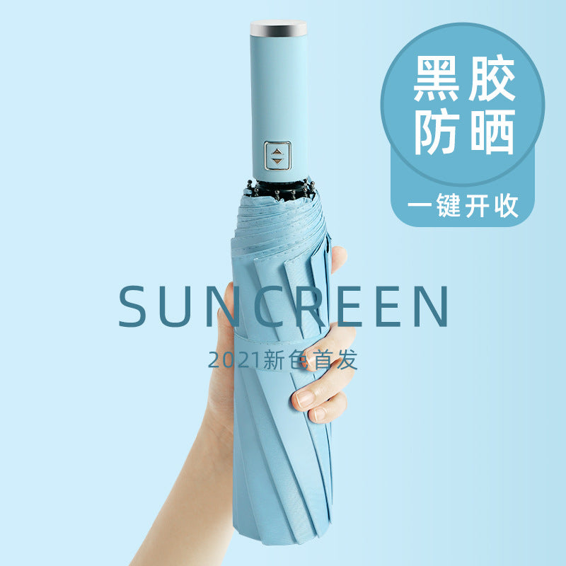 10 bone 12 bone vinyl automatic umbrella sunny and rainy dual-use sun protection male and female student parasol three folding sun rain