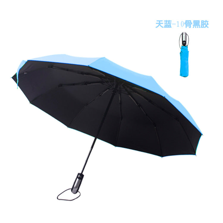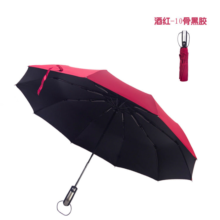 10-bone automatic sunny umbrella folding men's vinyl automatic umbrella dual-purpose double-person three-fold wholesale advertising umbrella