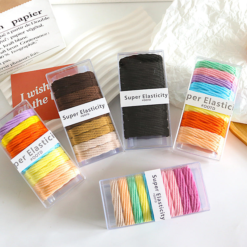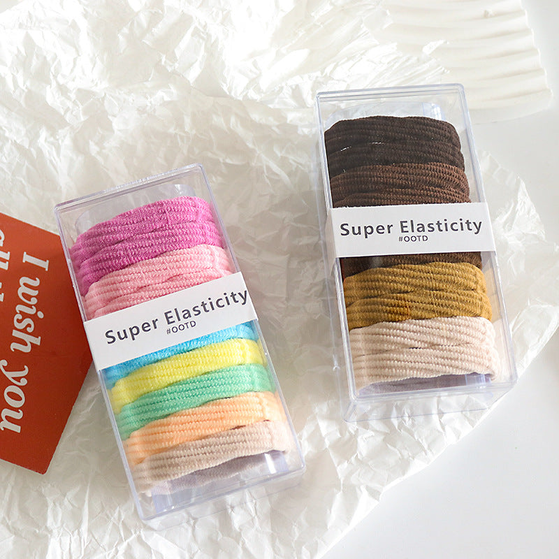 10 Boxed Korean Style Jacquard Striped Hair Rings Super Value New Seamless Towel Ring Head Rope Hair Rope Hair Accessories Wholesale