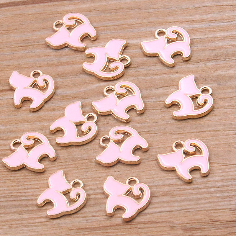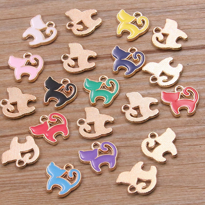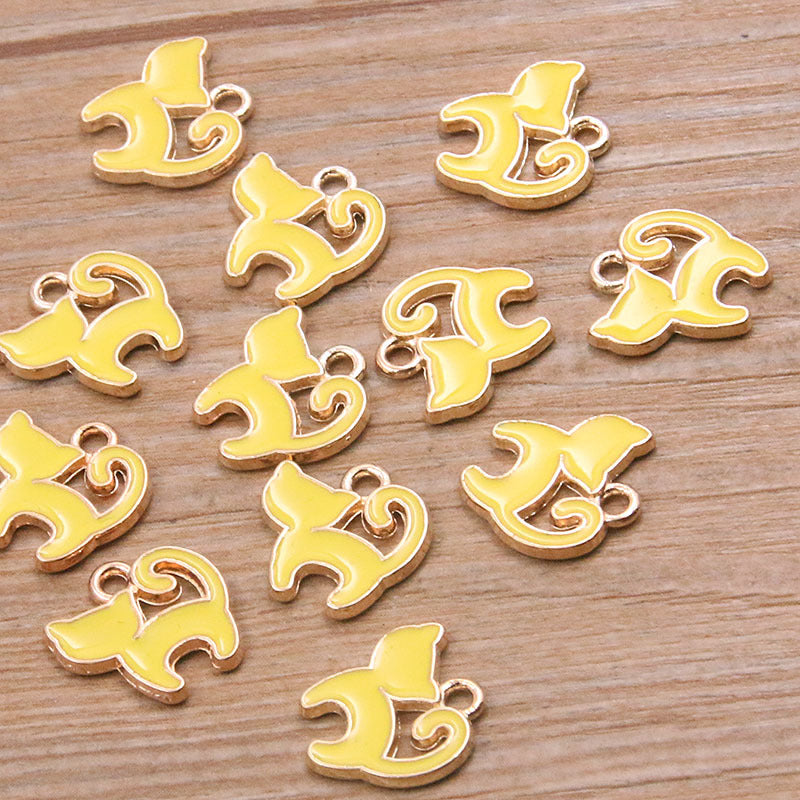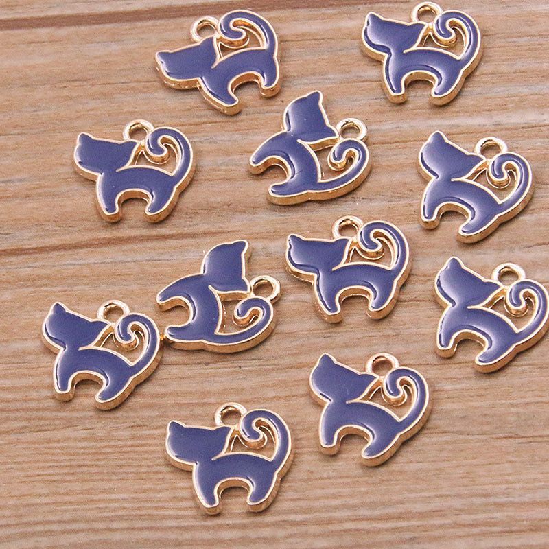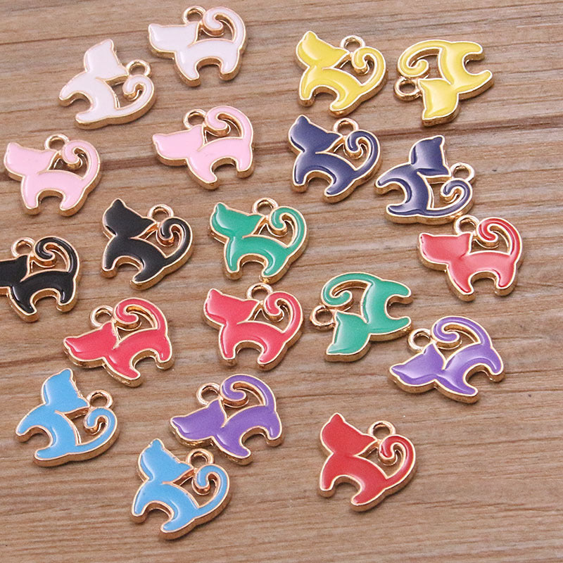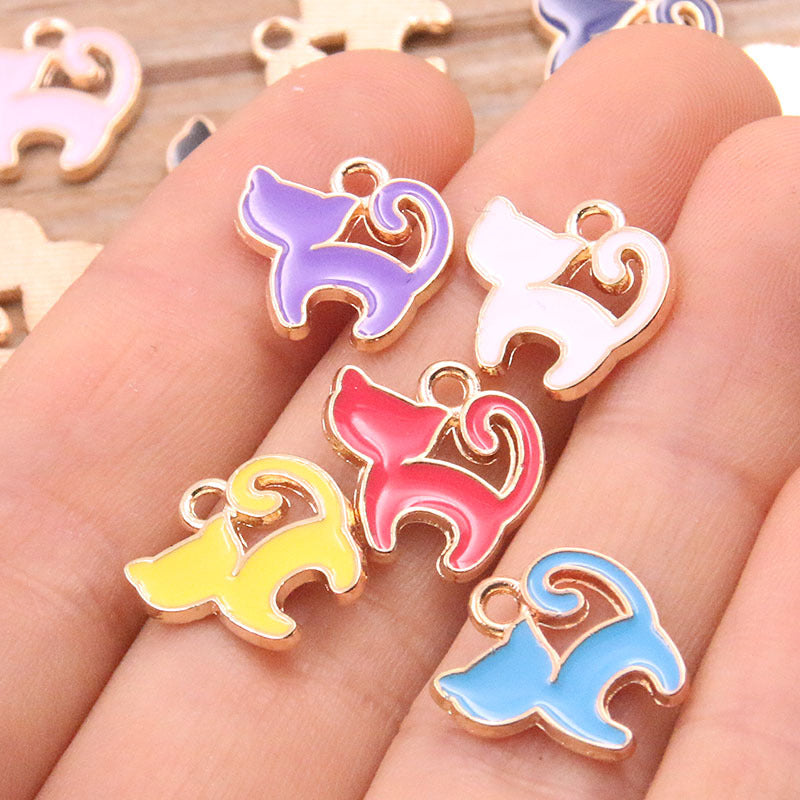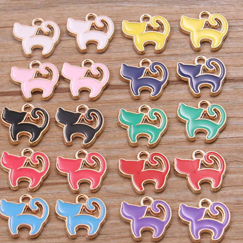10 colors 13*13mm alloy jewelry accessories KC gold drop oil charm MINI kitten pendant animal charm