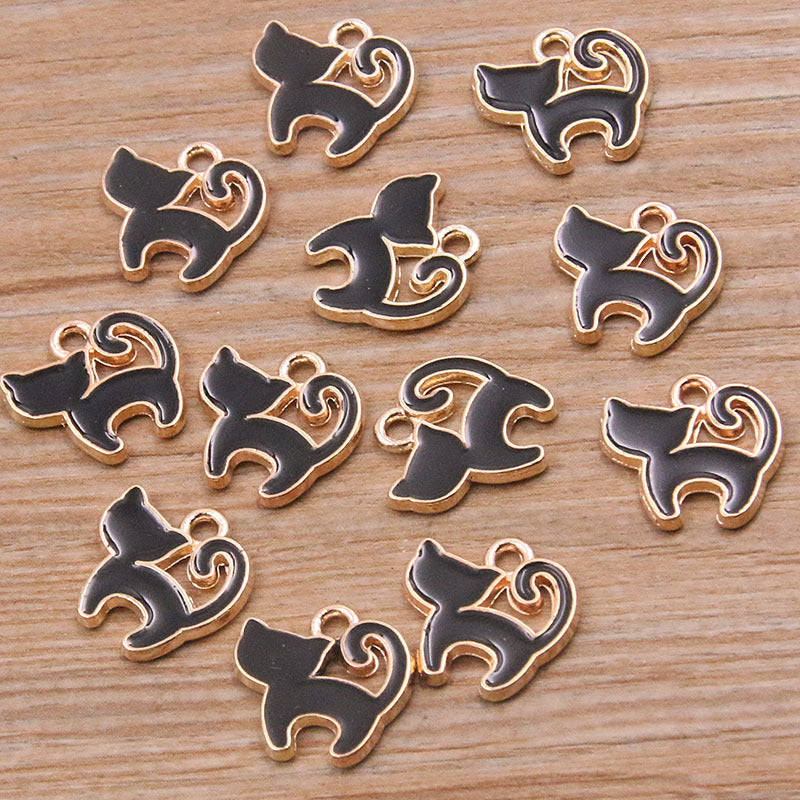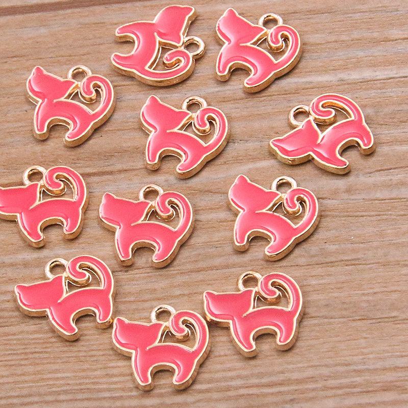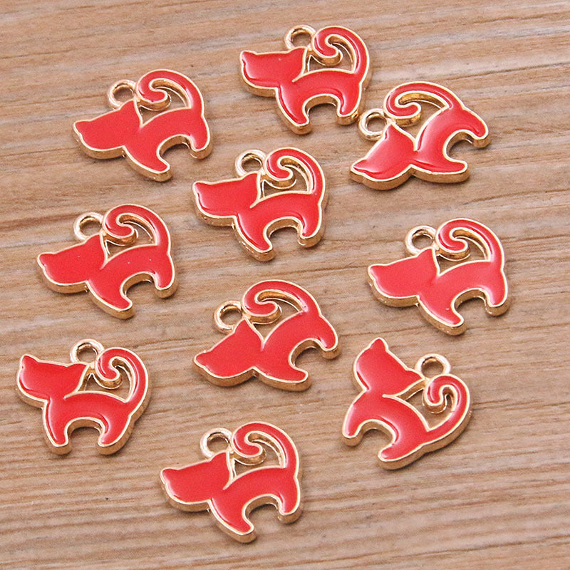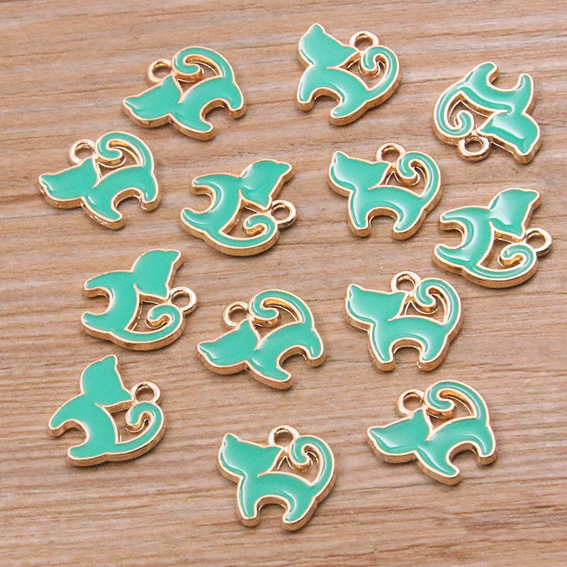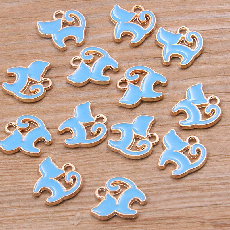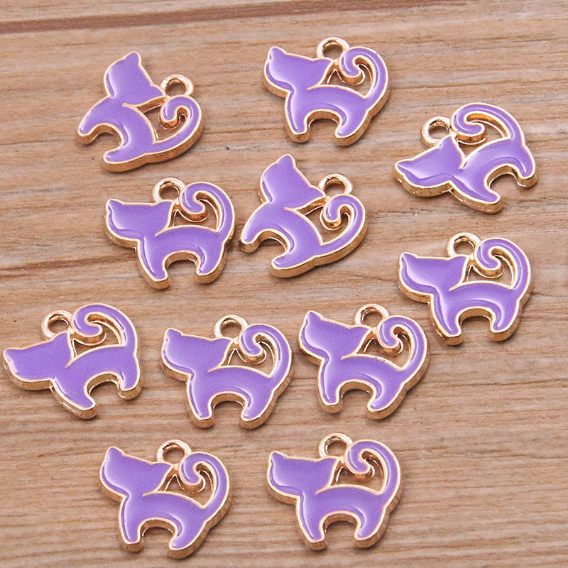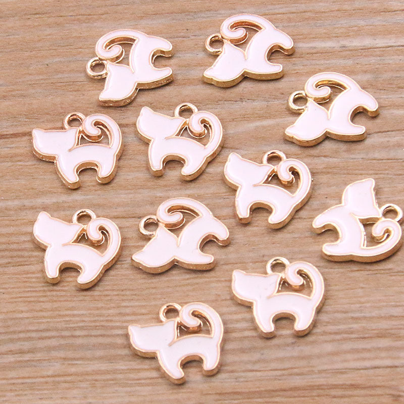 10 colors 13*13mm alloy jewelry accessories KC gold drop oil charm MINI kitten pendant animal charm