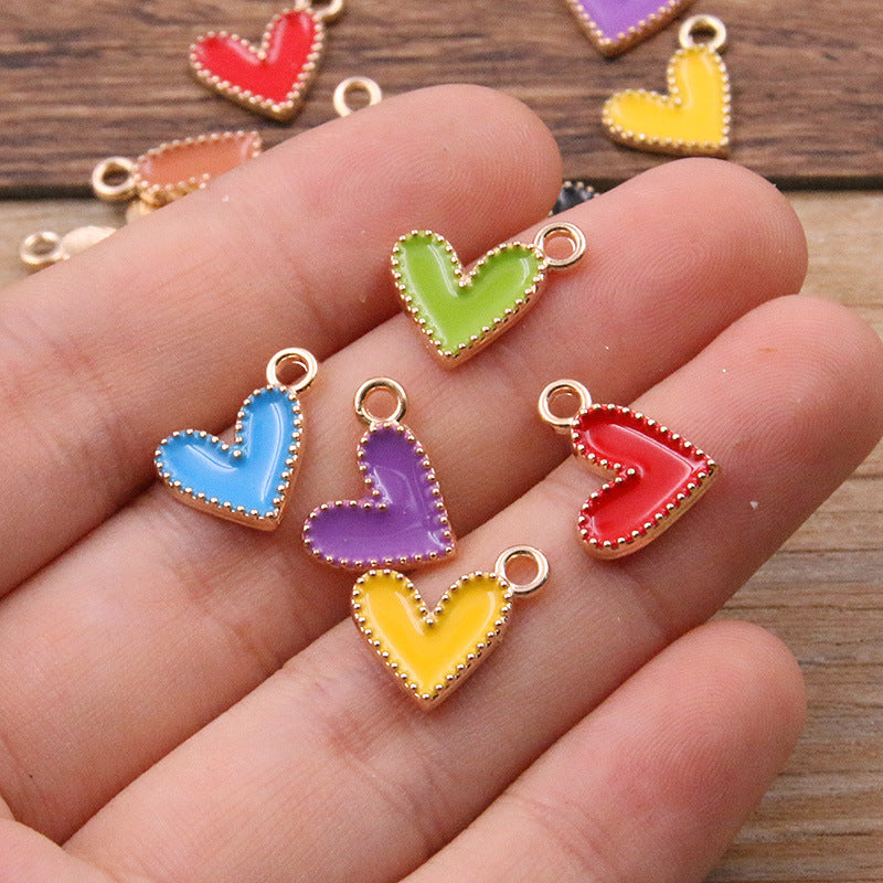 10 colors 13*13mm mini heart pendant KC gold dripping oil charm pendant jewelry bag nail art accessories