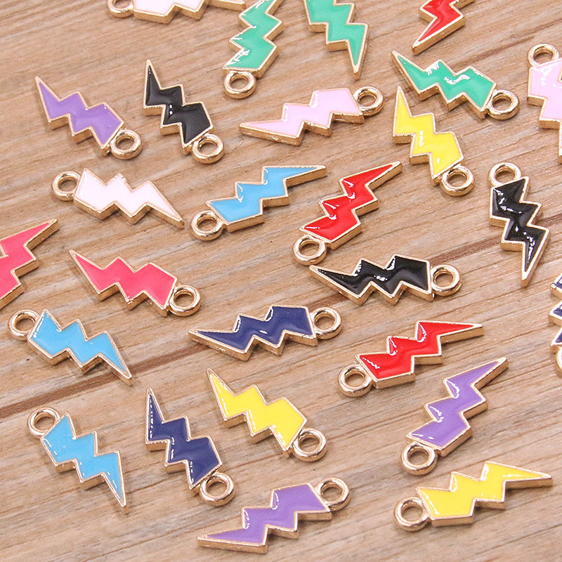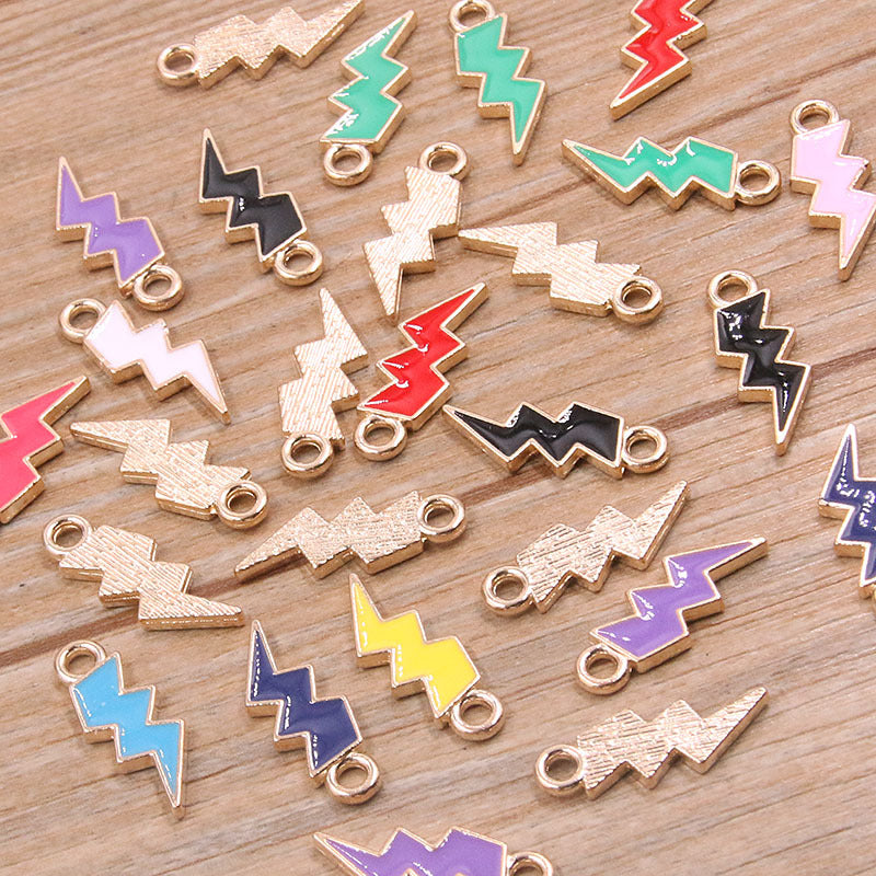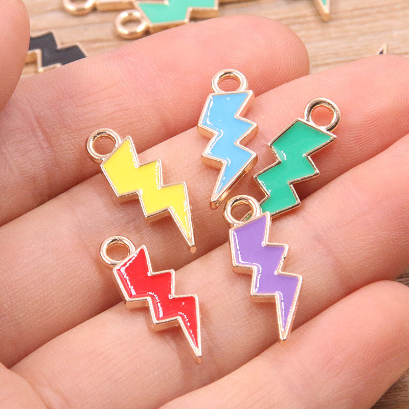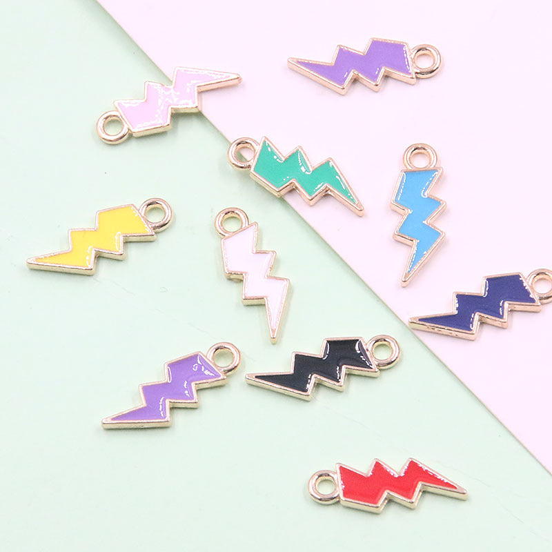 10 colors 7*20mm DIY alloy jewelry accessories KC gold drop oil lightning pendant pendant natural charm