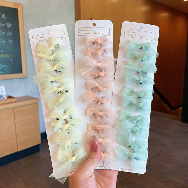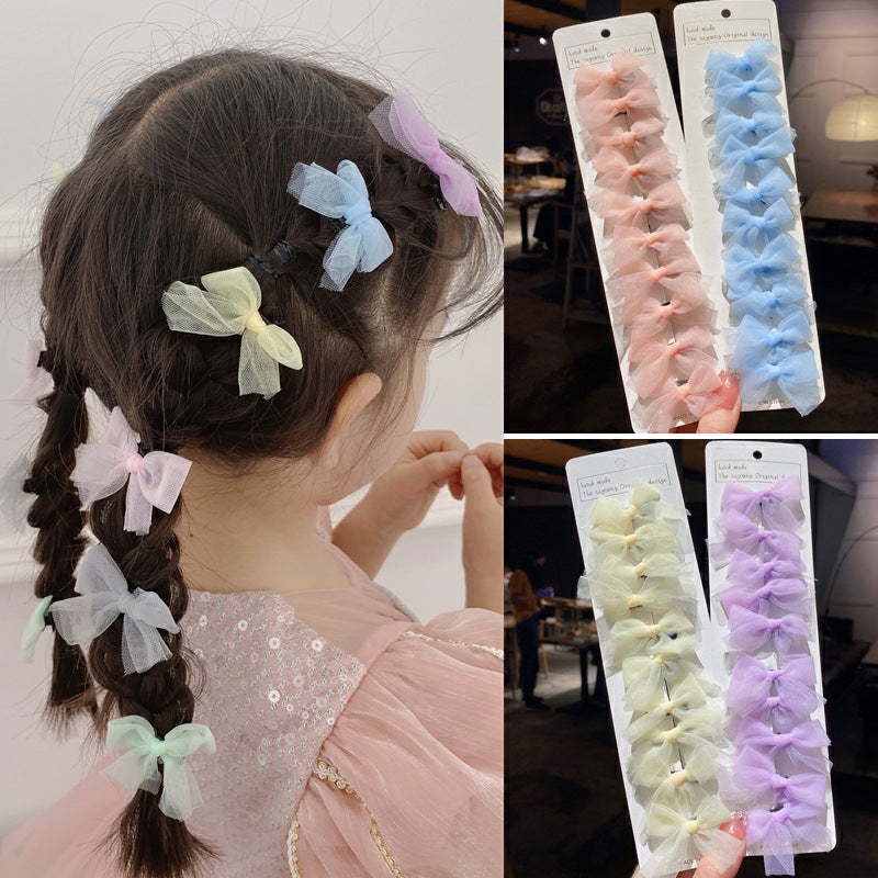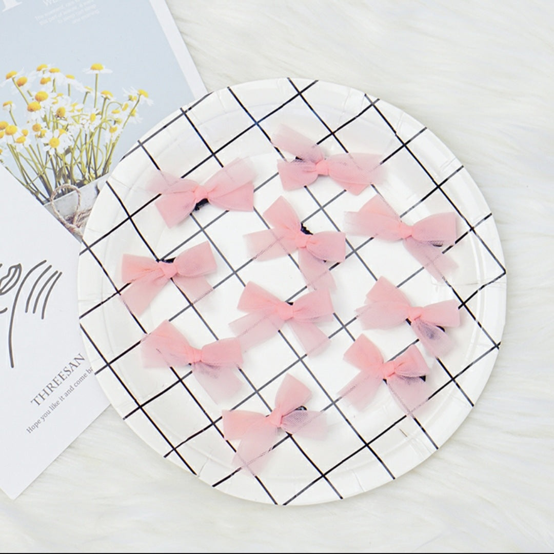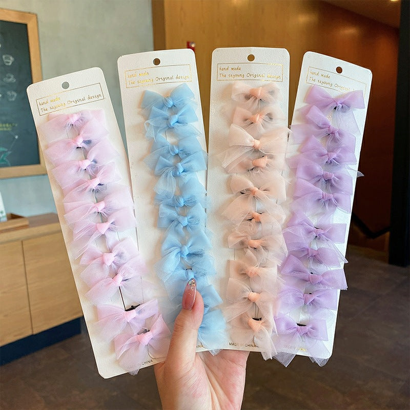10 packs~Korean version of children's bowknot hairpin small mesh yarn sweet and simple girl pink princess hairpin