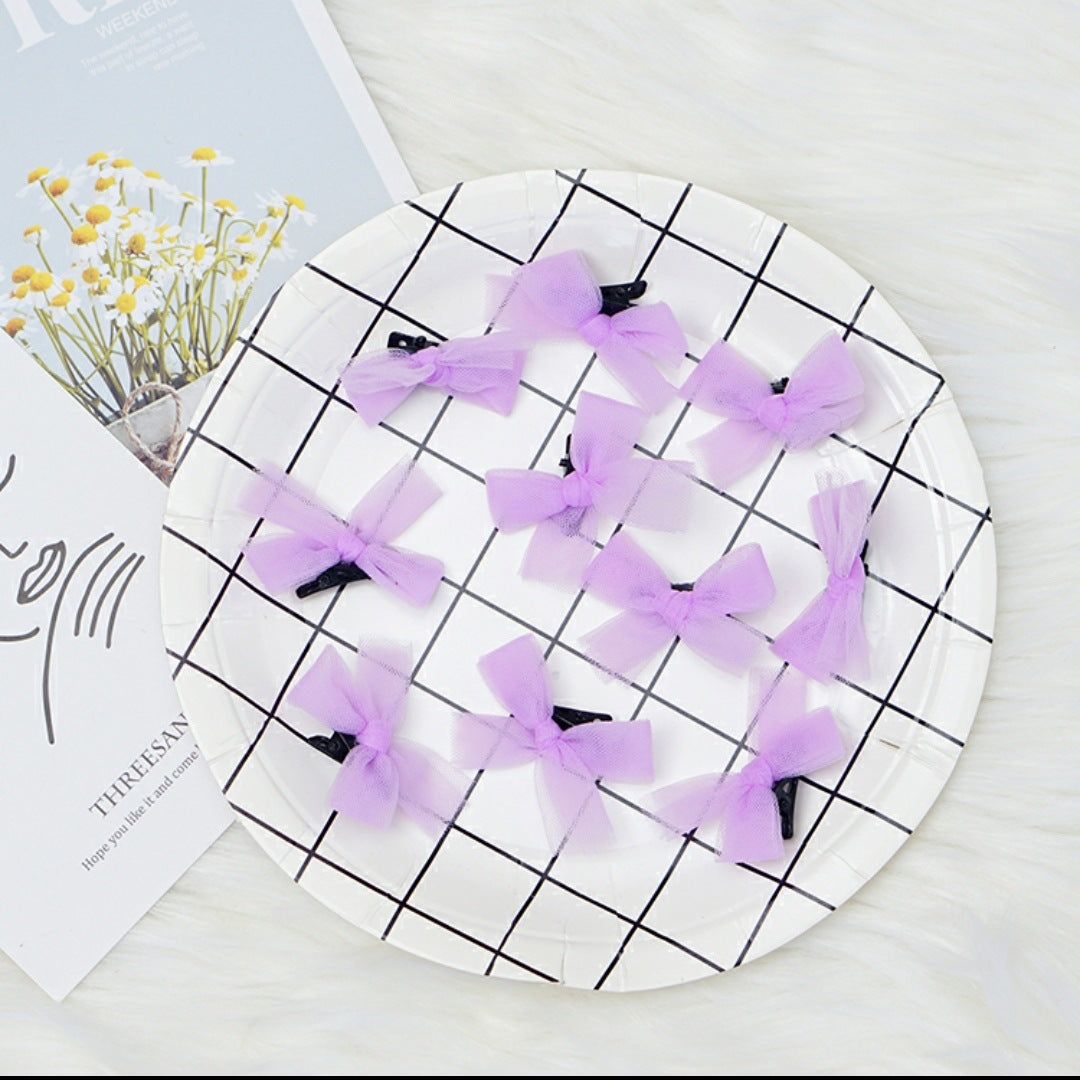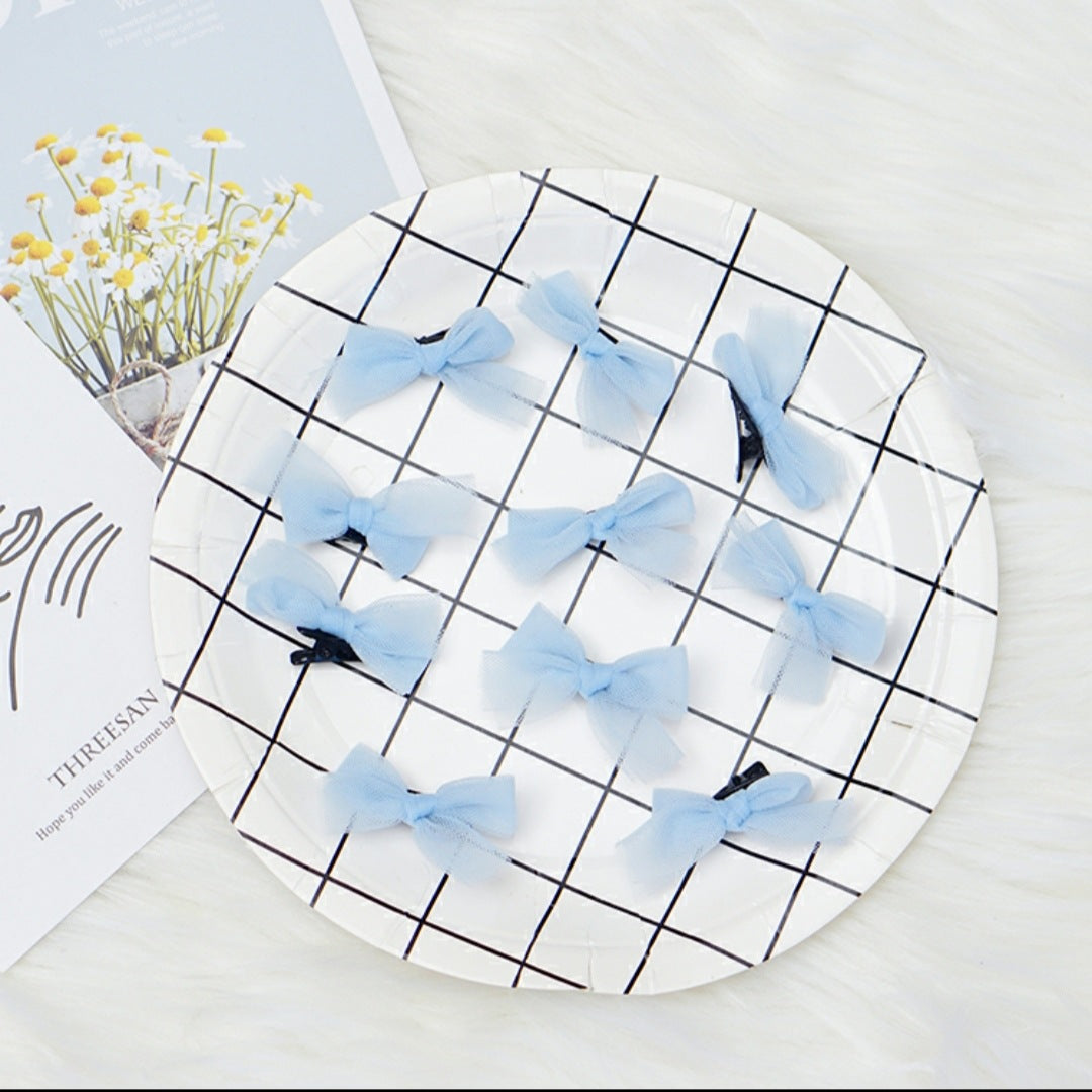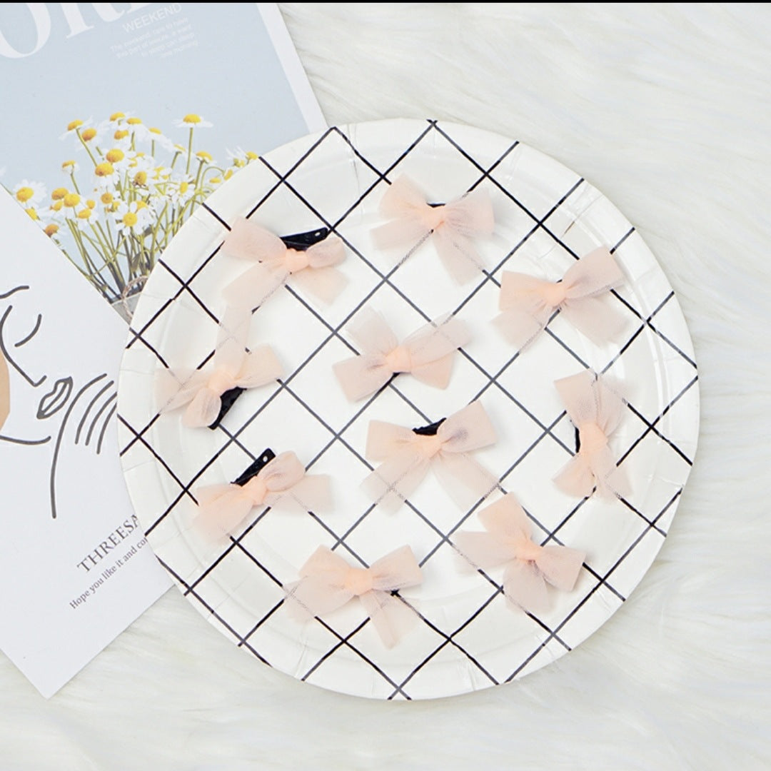 10 packs~Korean version of children's bowknot hairpin small mesh yarn sweet and simple girl pink princess hairpin