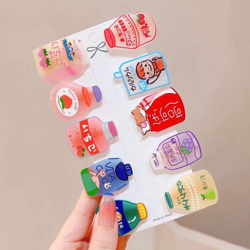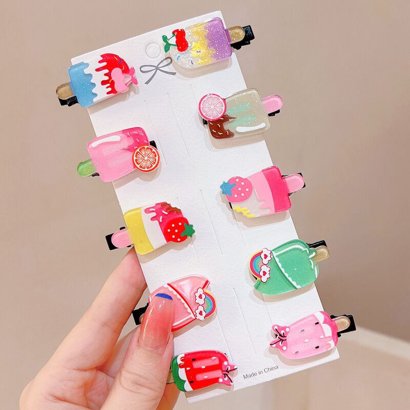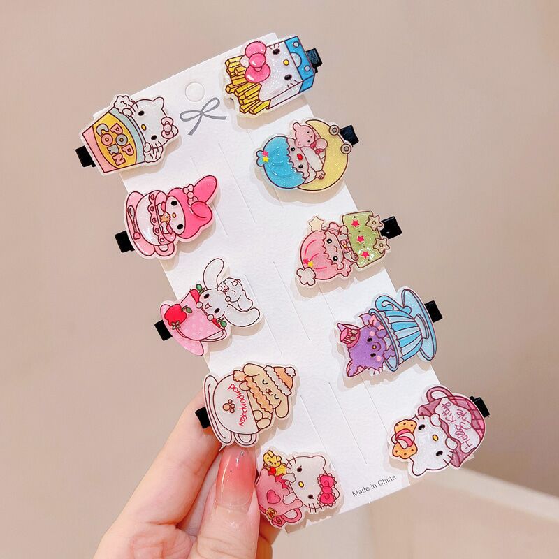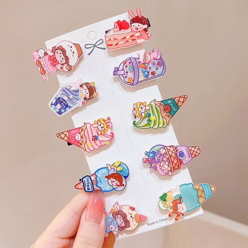 10-piece set~Cartoon hairpin acetic acid plate ice cream bangs clip set female cinnamon dog cute and sweet hairpin