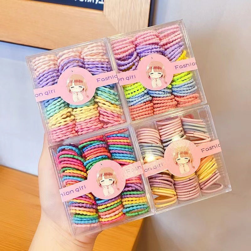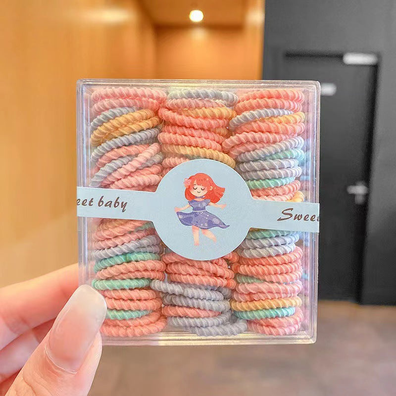 100 boxed children's seamless small chirping rubber bands do not hurt hair baby's hair circle cute high elastic tie hair