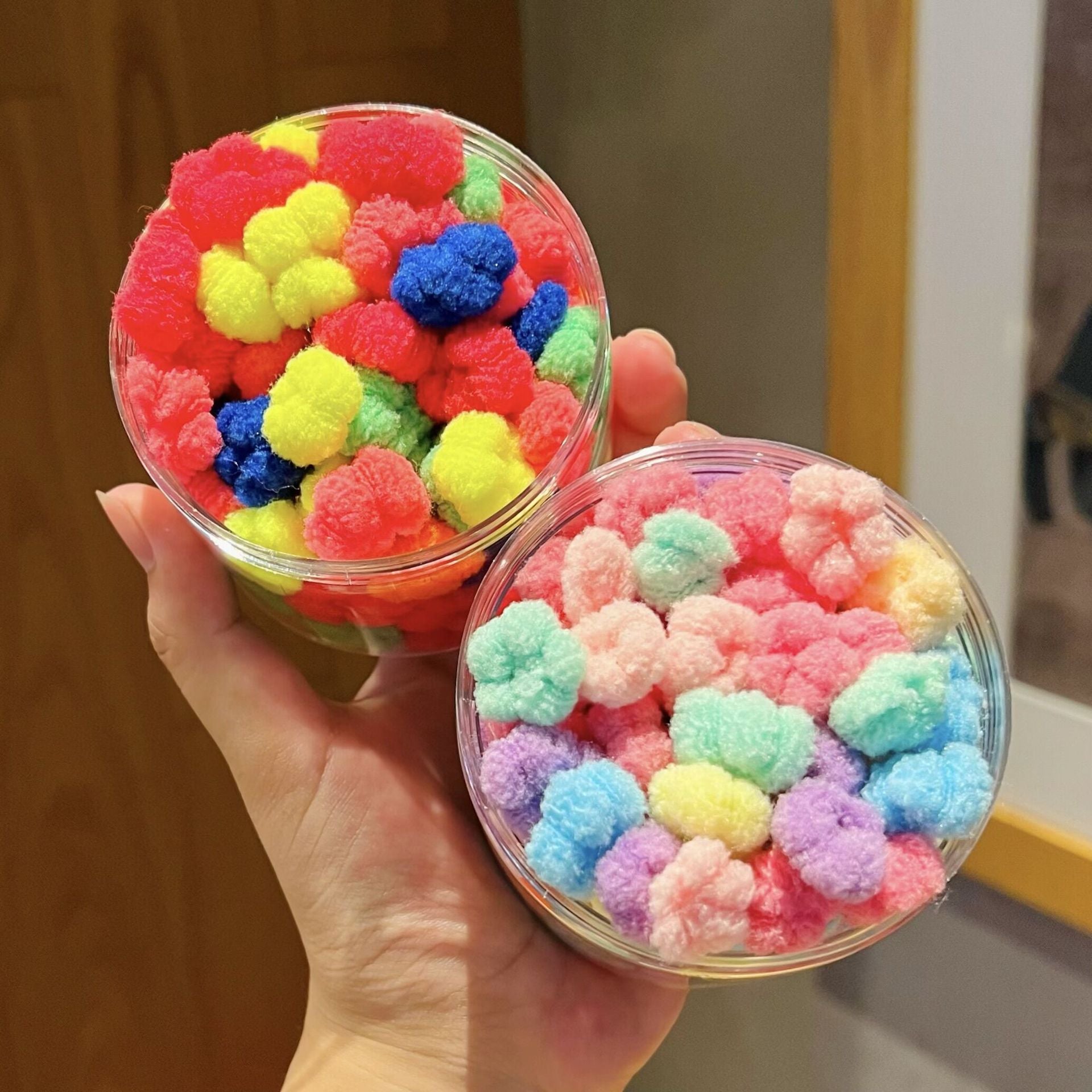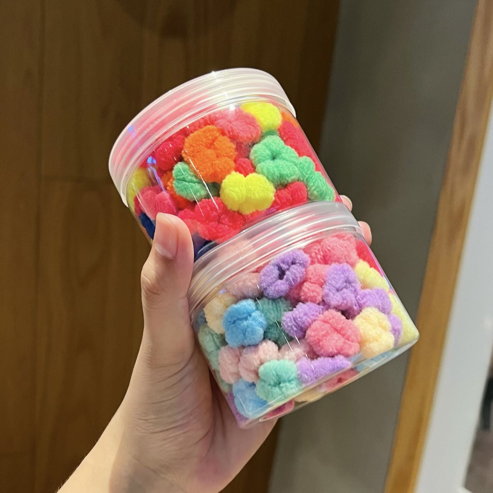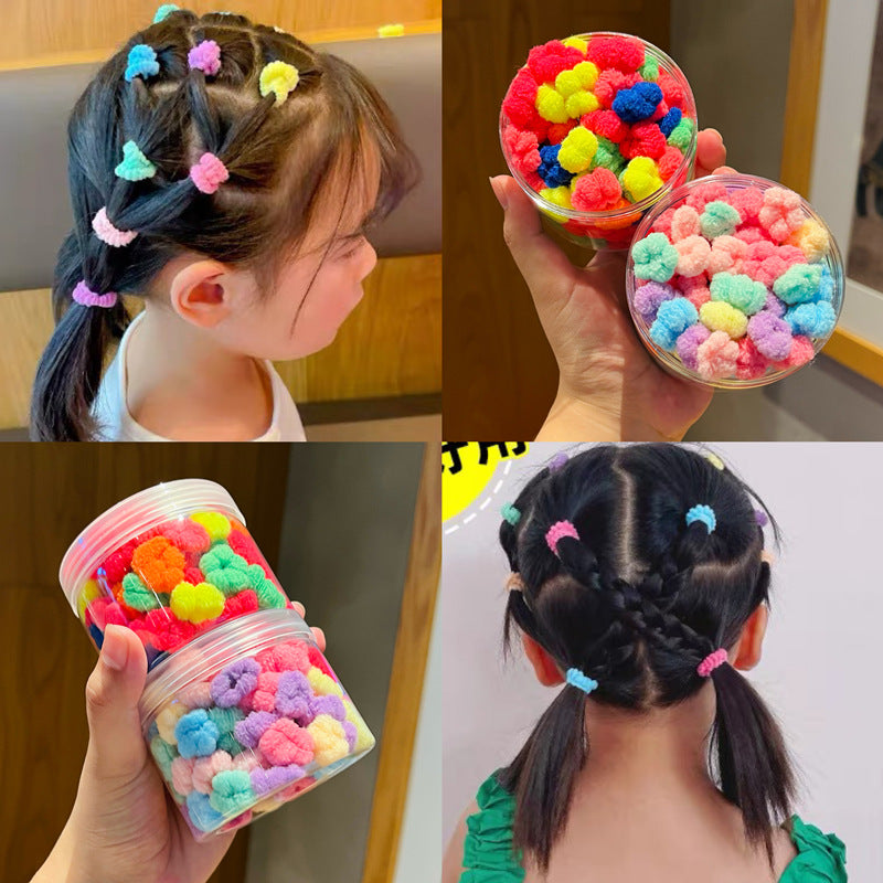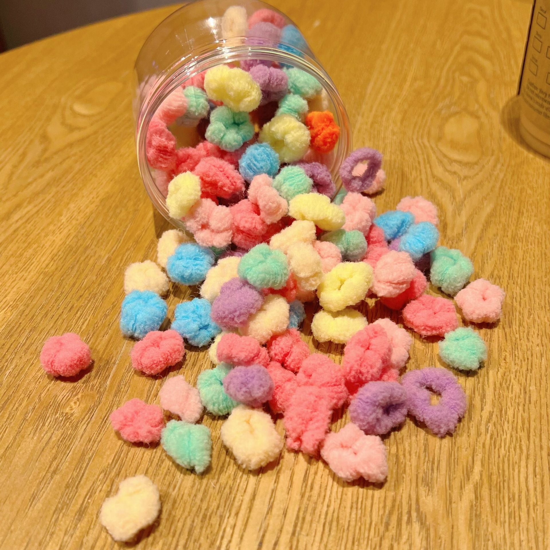 100 canned colorful five-petal flowers sweet seamless braided hair ring baby thumb ring tie hair children towel ring