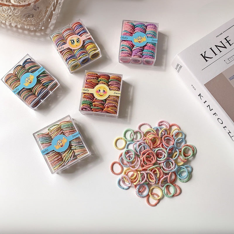 100 colored children's head ropes that don't hurt hair rubber bands baby tie head thumb hair ring high elastic girl's head rope tie broken hair