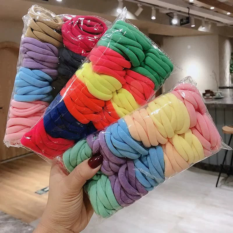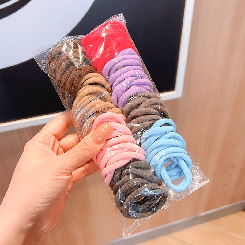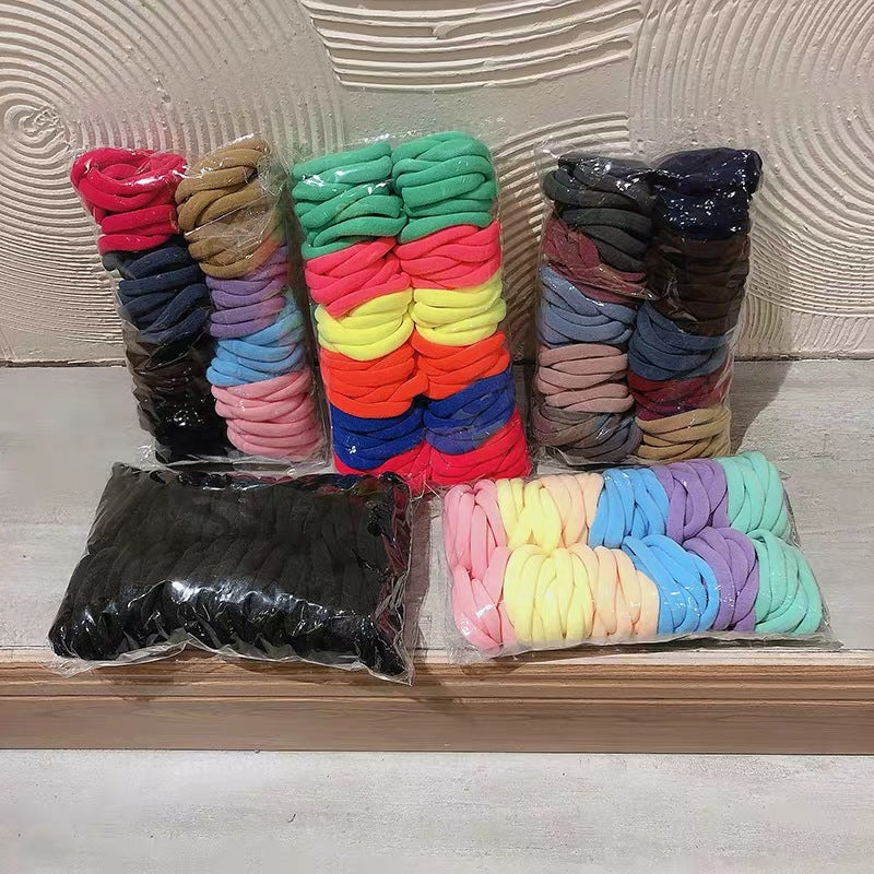 100 packs of high elastic seamless towel ring color hair ring head rope candy color rubber band leather cover hair rope wholesale