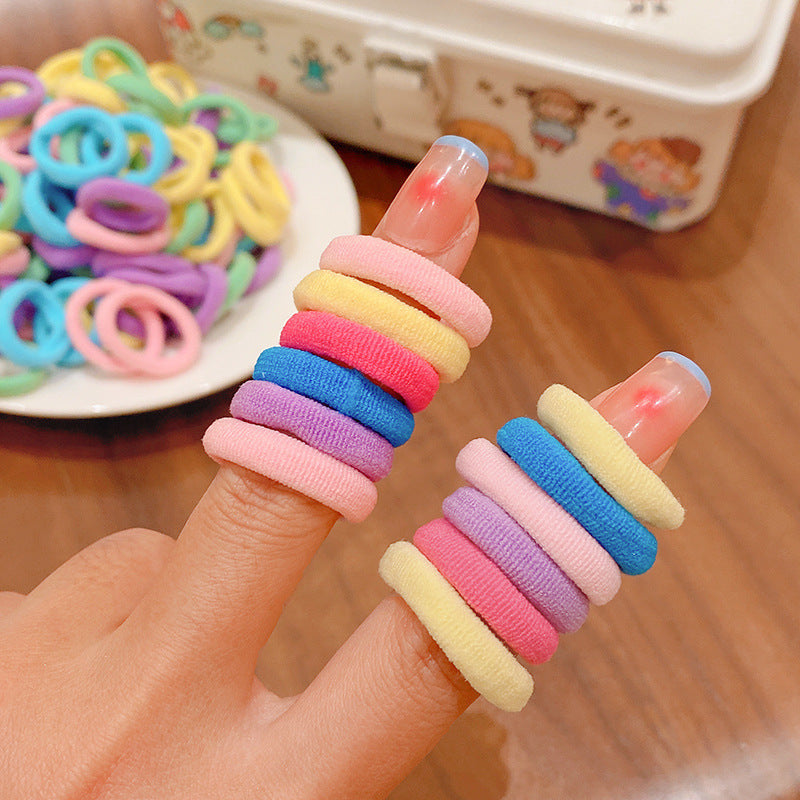 100 pieces of filling rubber band towel ring baby does not hurt hair high bullet rope ponytail color rubber band hair accessories