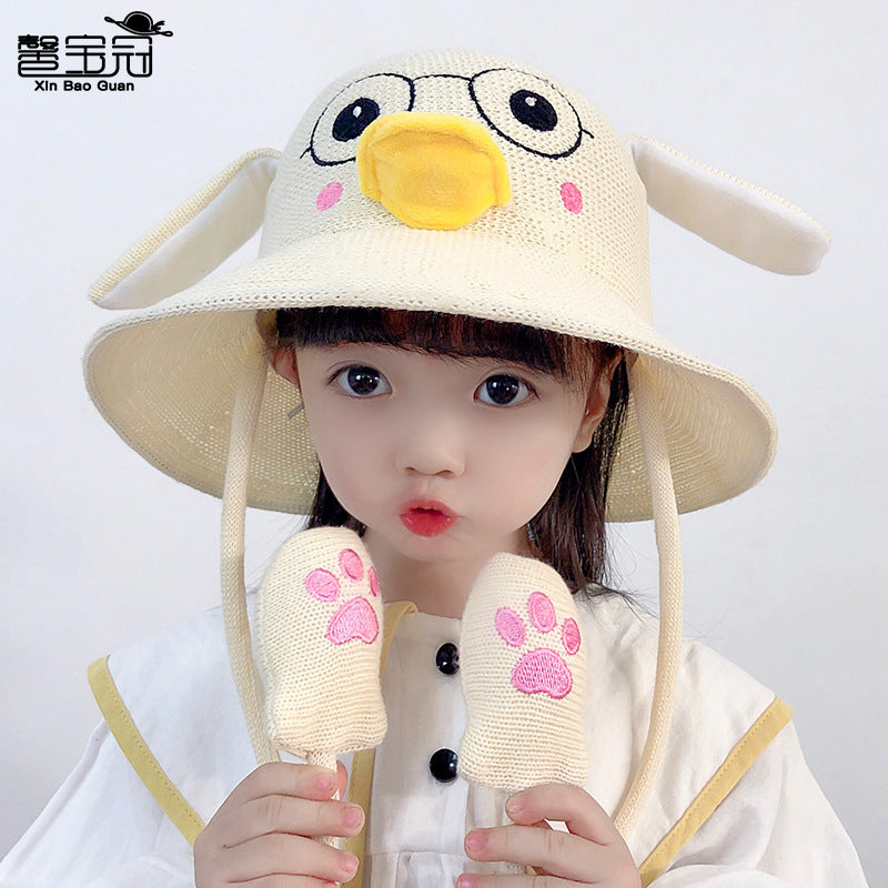 1005 spring and summer new men's and women's net red fisherman's hat vibrato with the same ear moving hat children's sun visor