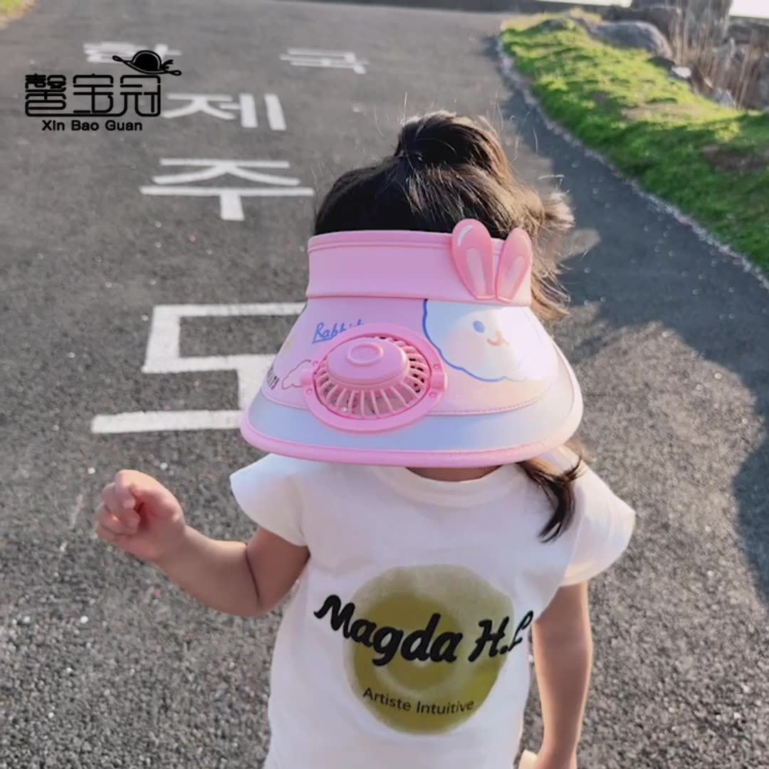 1053 children's hat summer with fan sun hat male and female baby sun hat cartoon cute sunscreen empty top hat