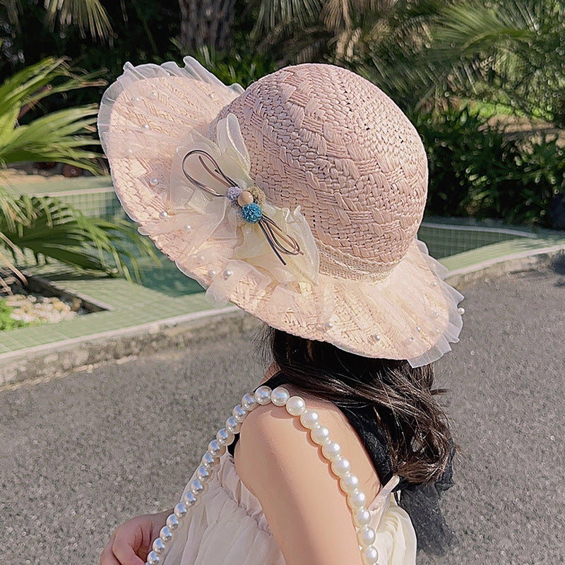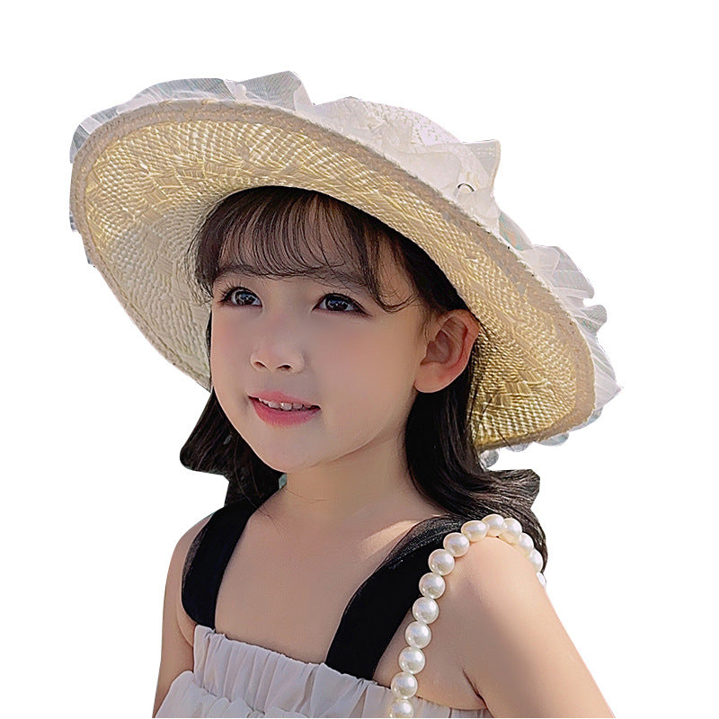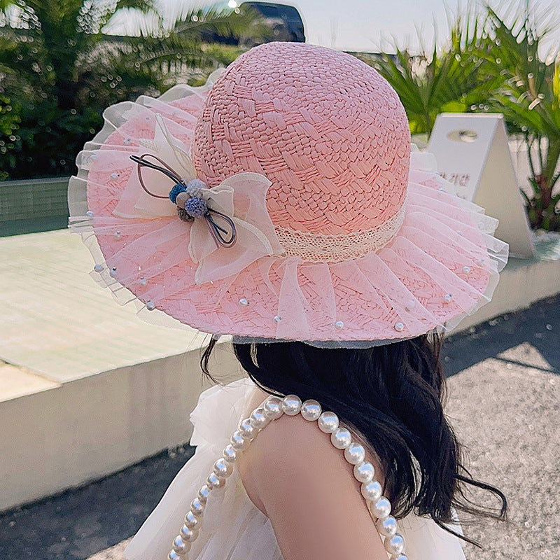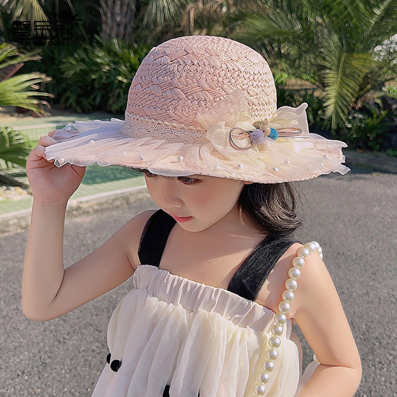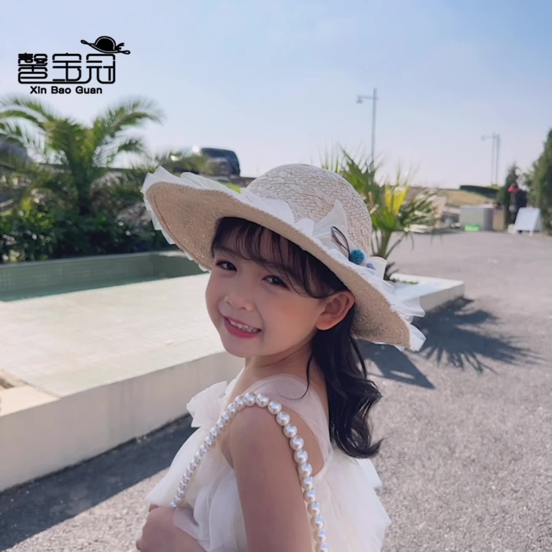 1068 children's hat sweet and cute big eaves straw hat summer baby girl sunscreen hat outdoor small fragrance sunshade hat