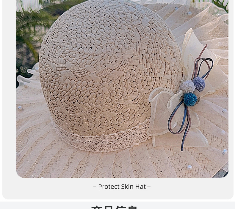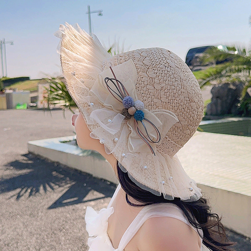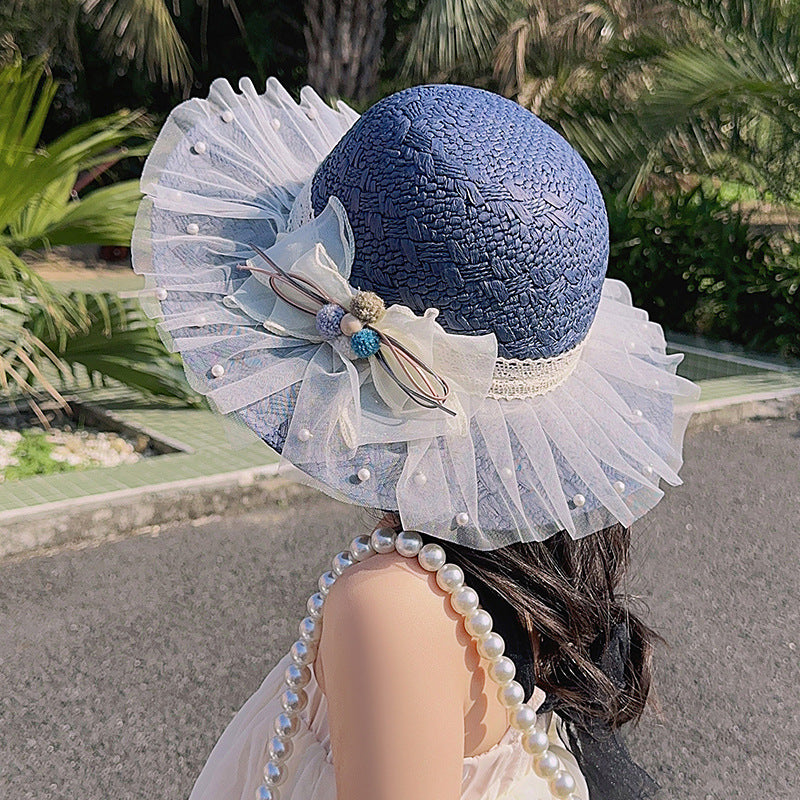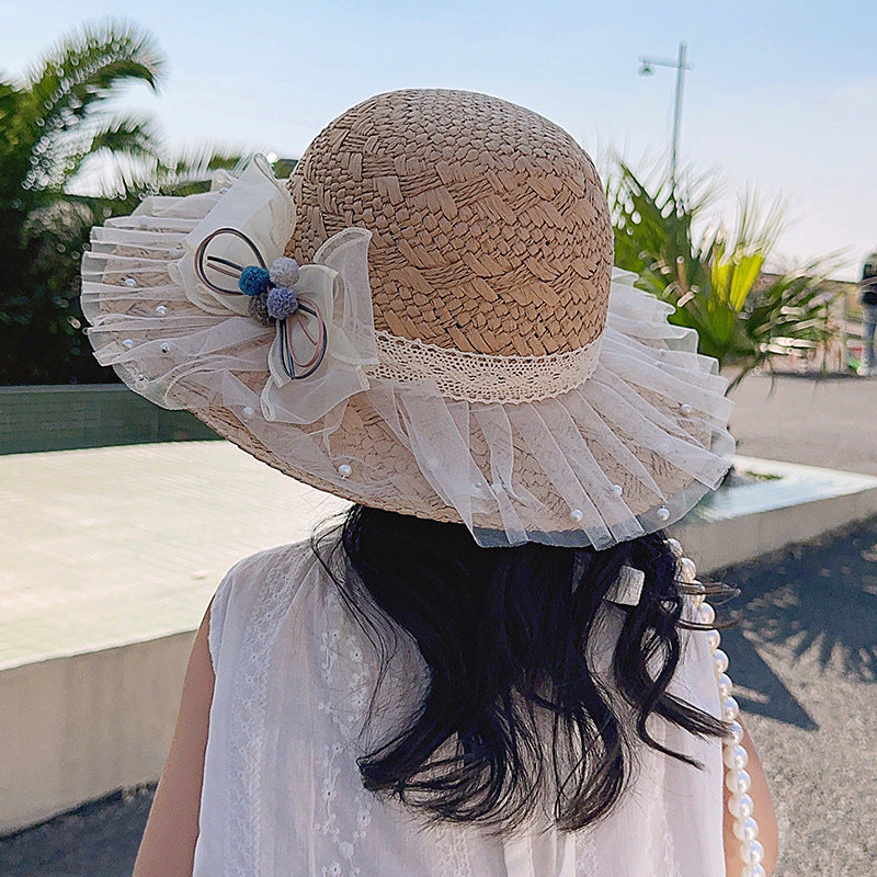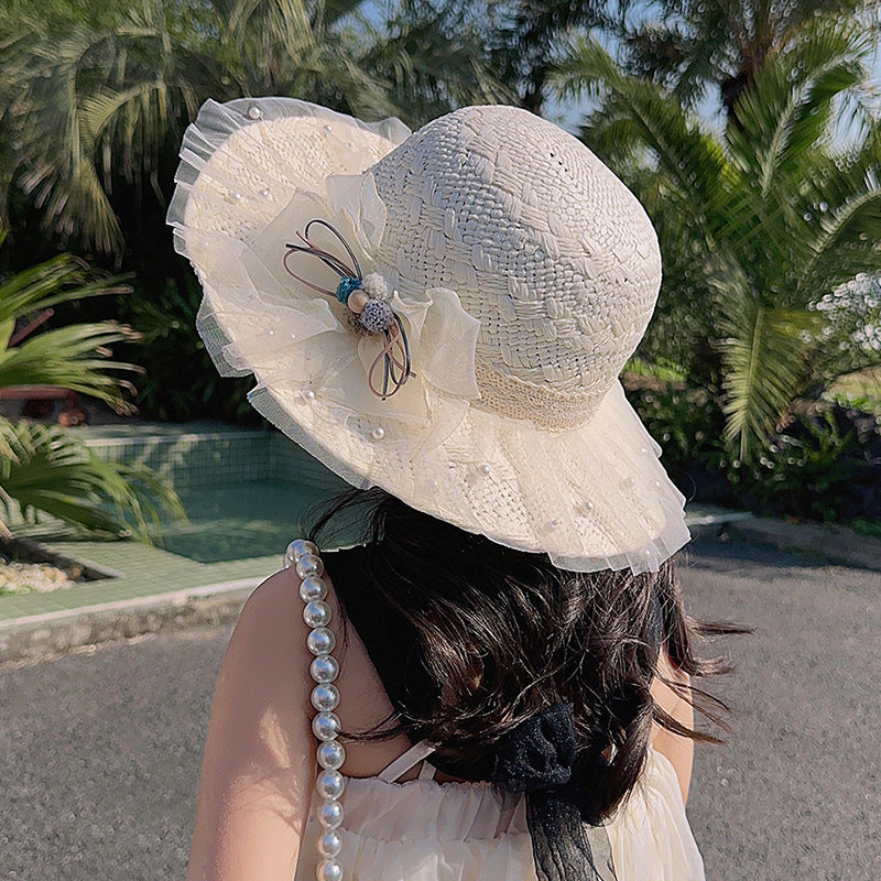 1068 children's hat sweet and cute big eaves straw hat summer baby girl sunscreen hat outdoor small fragrance sunshade hat