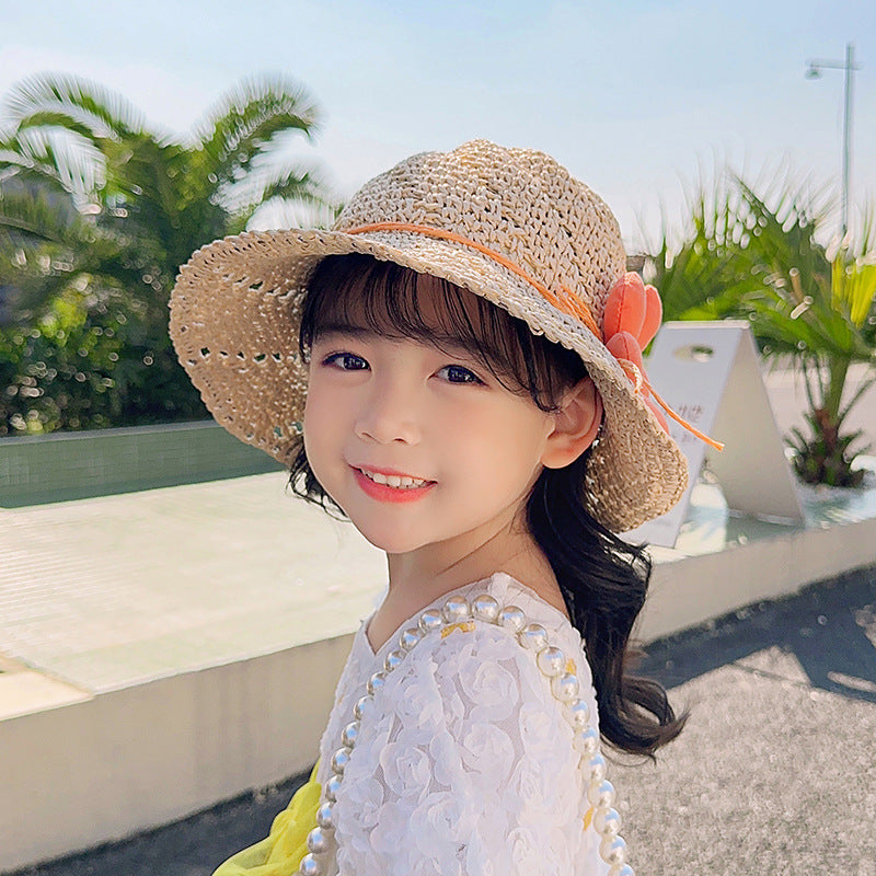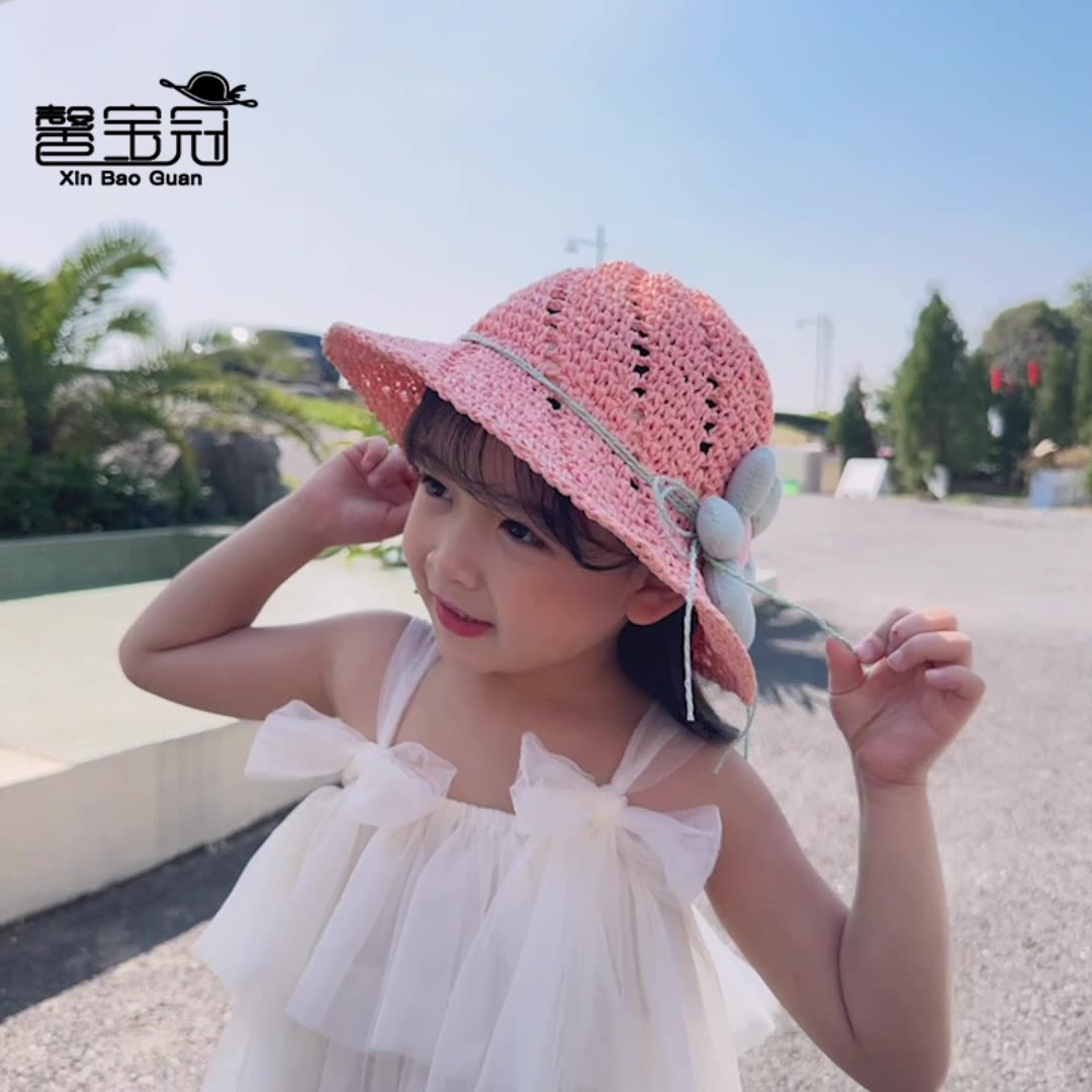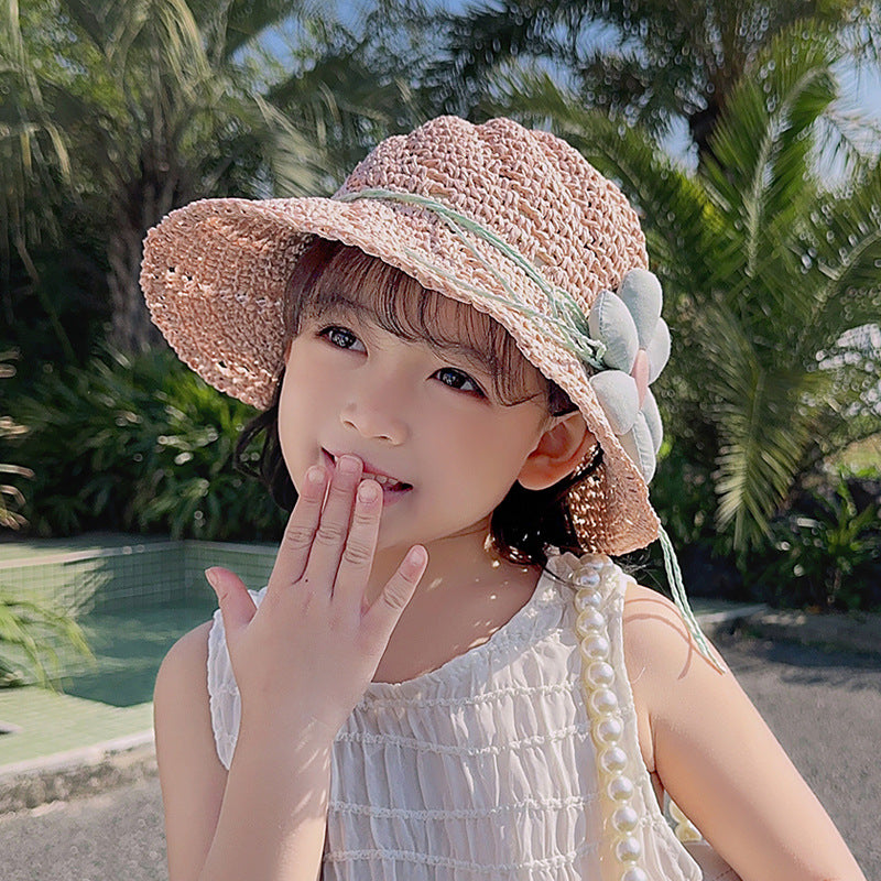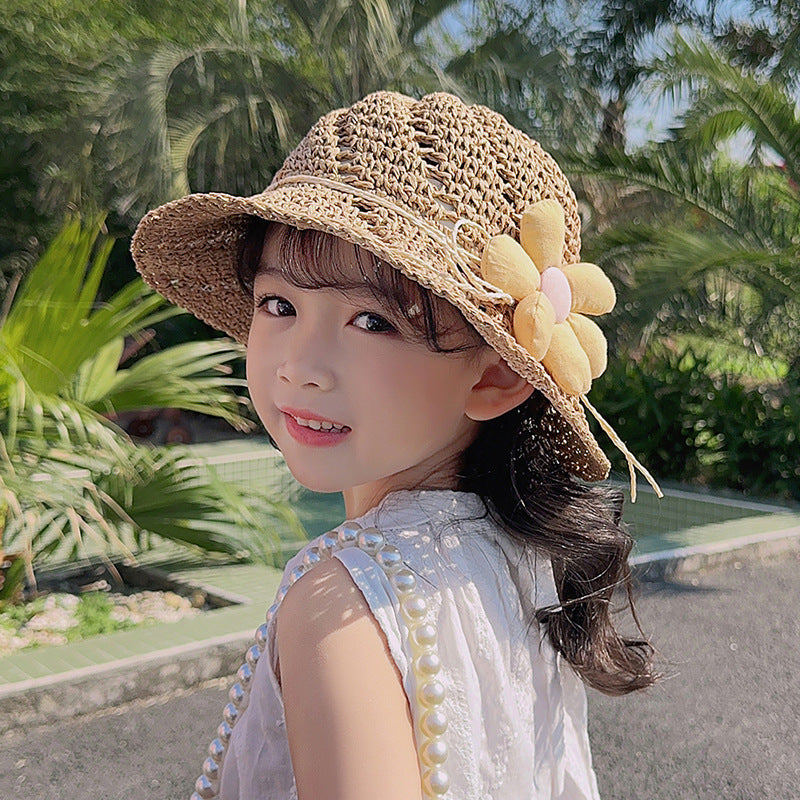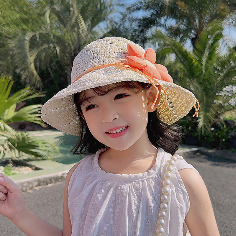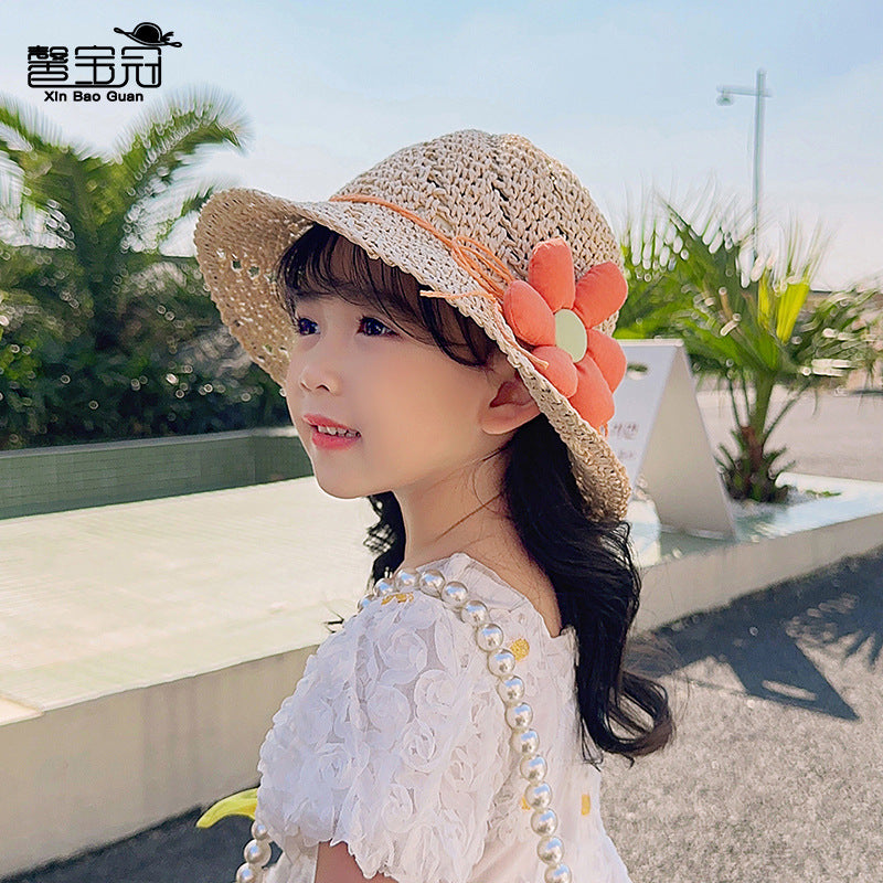 1089 children's hat summer sunscreen straw hat female baby sun hat cute flower sun hat straw fisherman hat