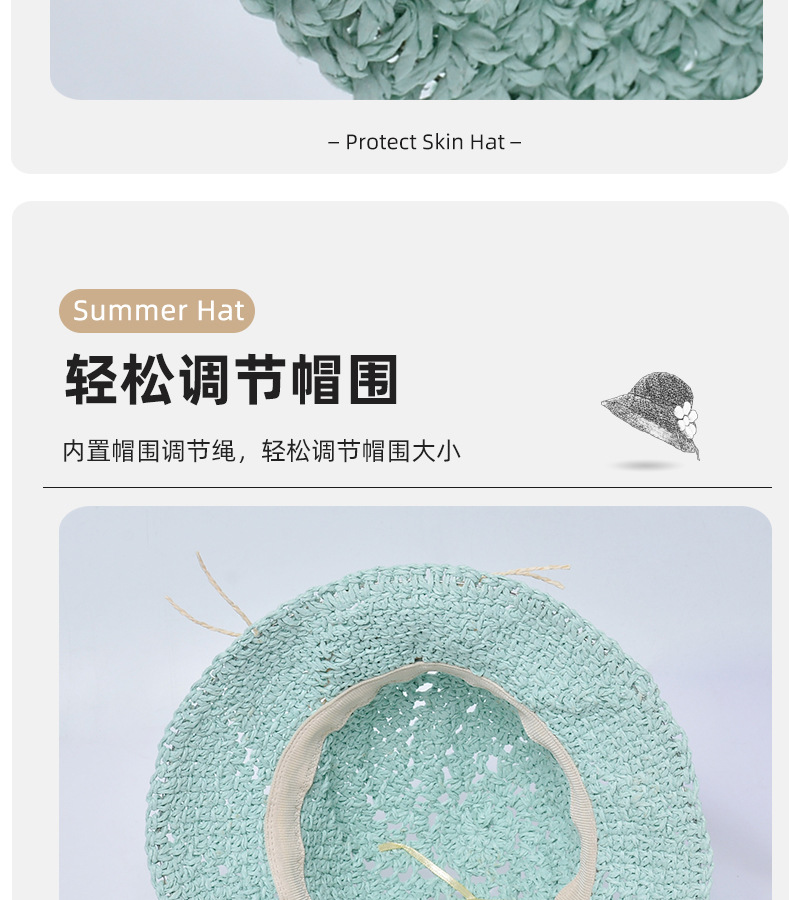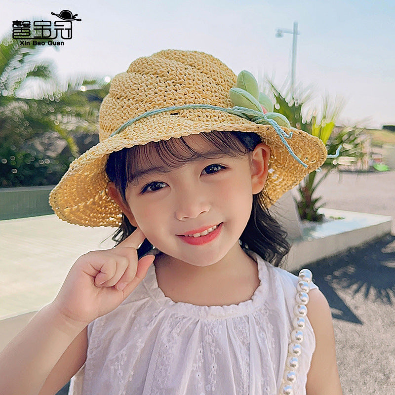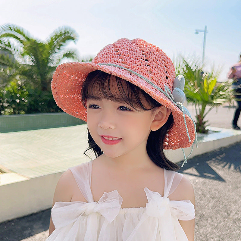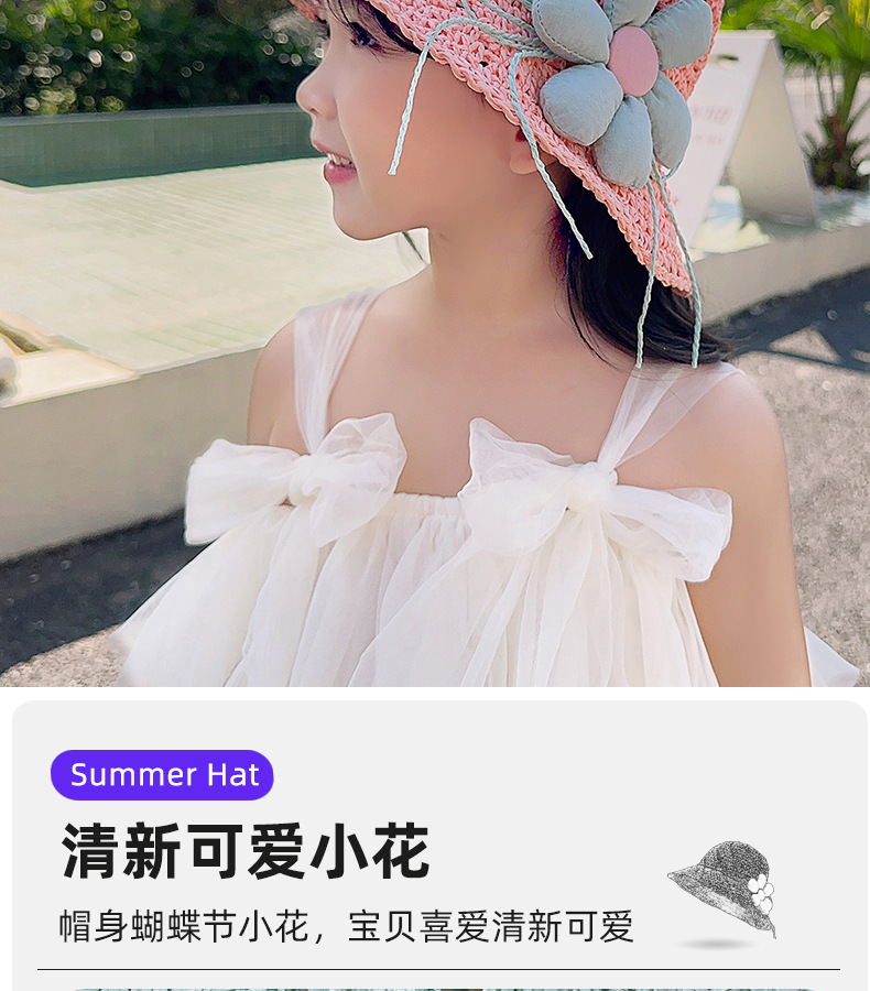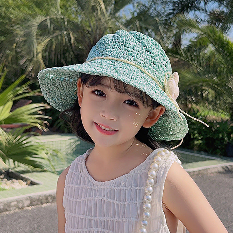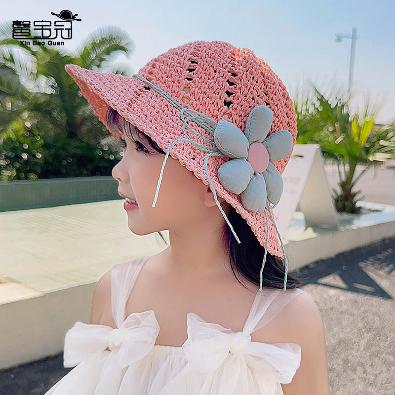 1089 children's hat summer sunscreen straw hat female baby sun hat cute flower sun hat straw fisherman hat