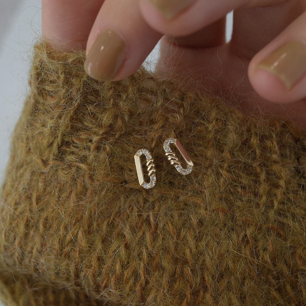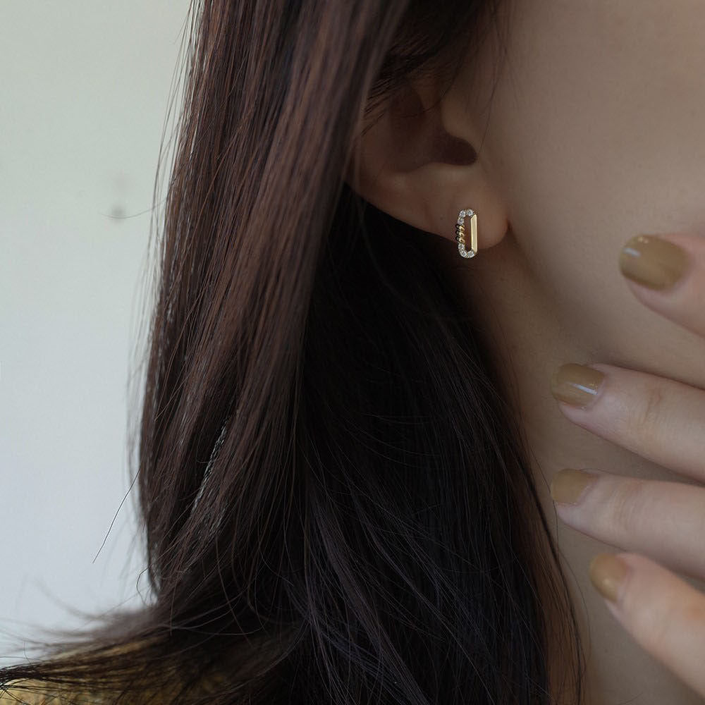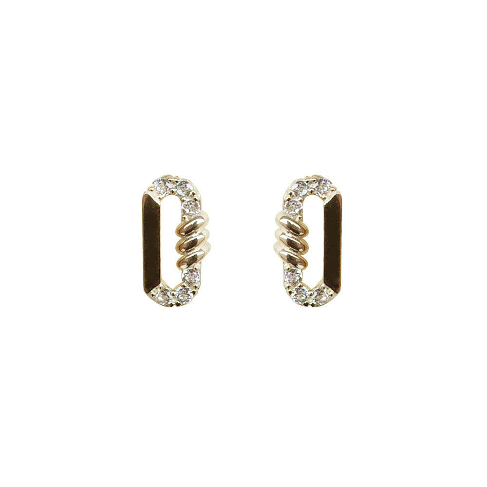 10K gold plated earrings, temperament, micro-paved light gold K gold intellectual simple geometric twist earrings for women with amber ears