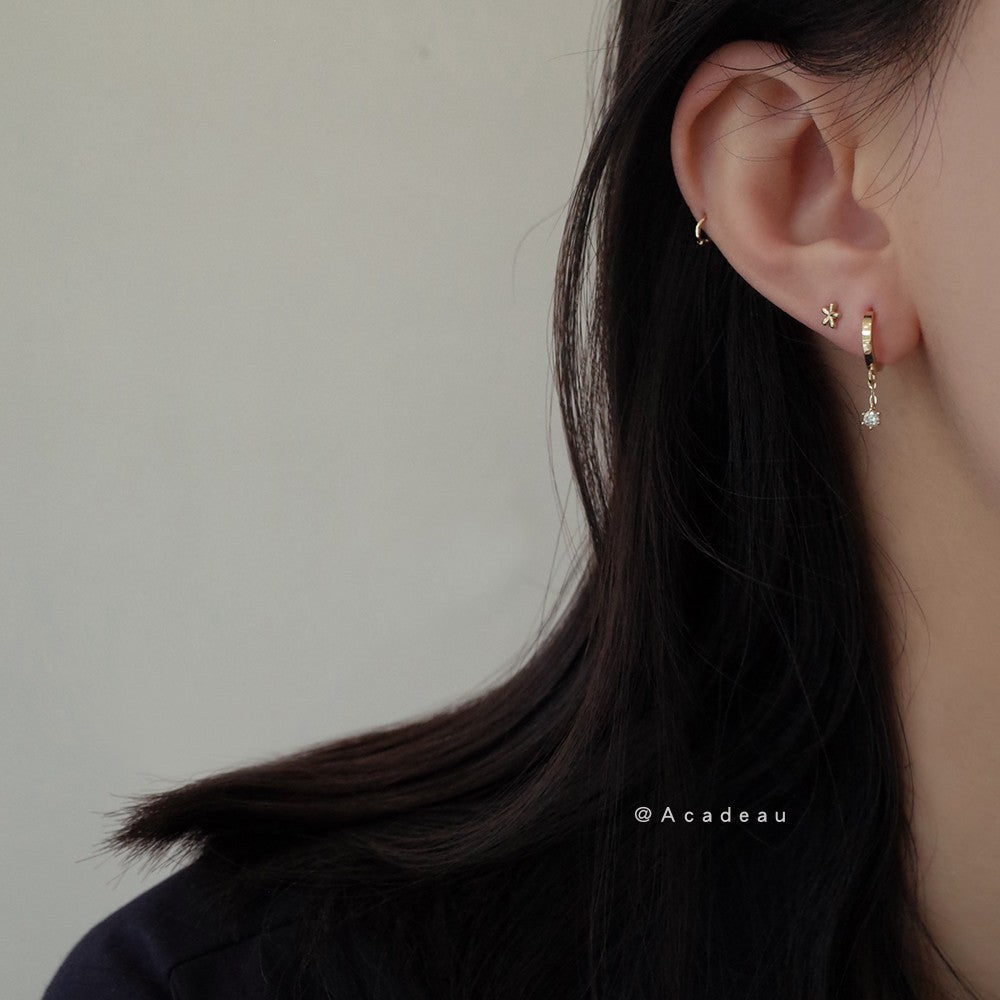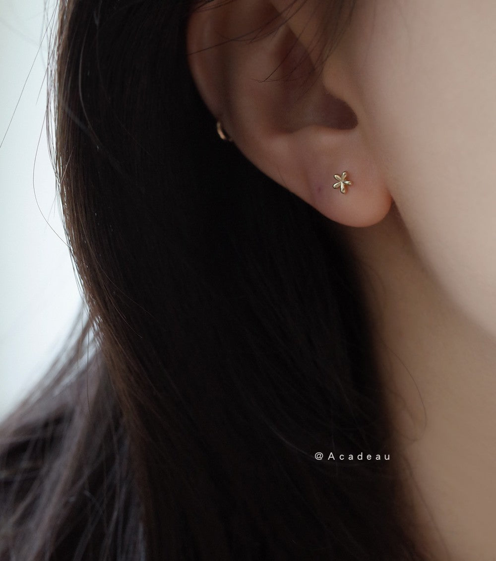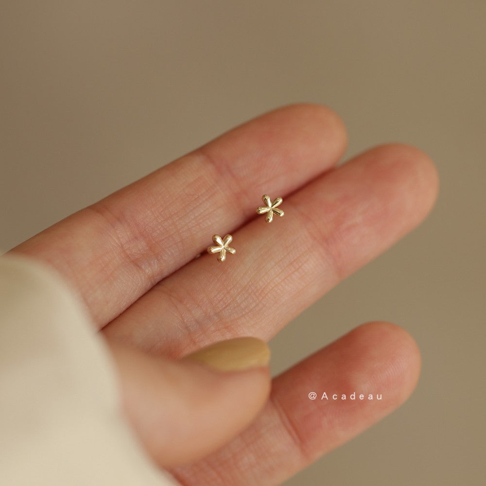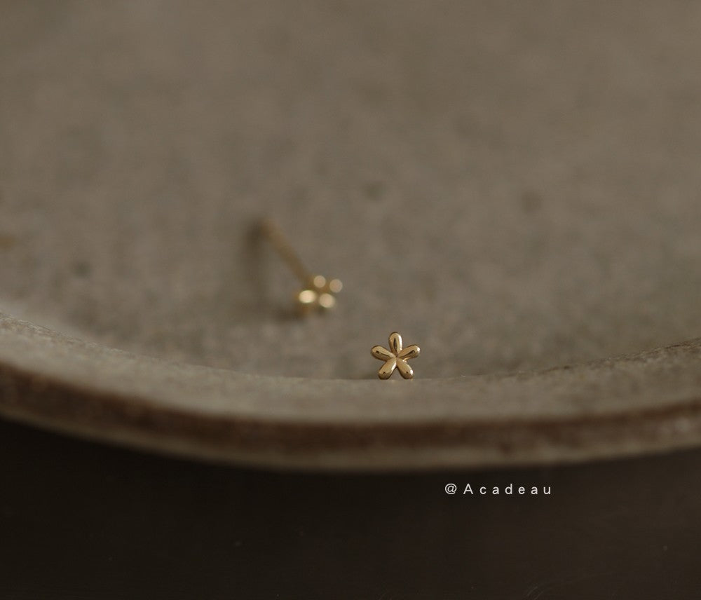 10K gold plated mini glossy flower earrings cute simple student earrings copper earrings women's E038 Shantou