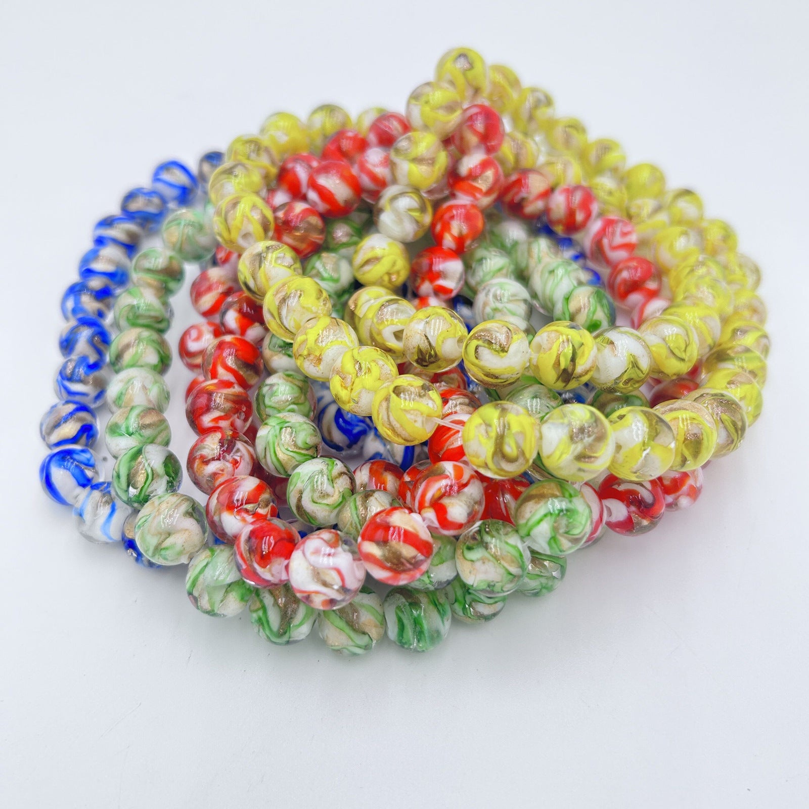 10mm gold powder two-color twisted silk glass beads ancient method glass handmade diy ancient style step shaking hairpin material beading