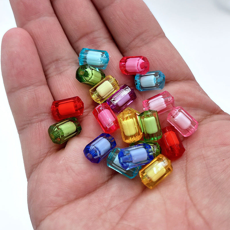 10pcs/pack 13*7mm acrylic transparent beads medium beads cylindrical beads perforated loose beads DIY mobile phone chain beads