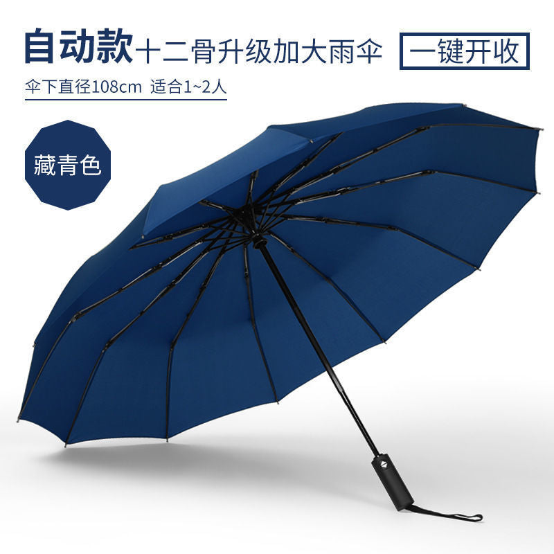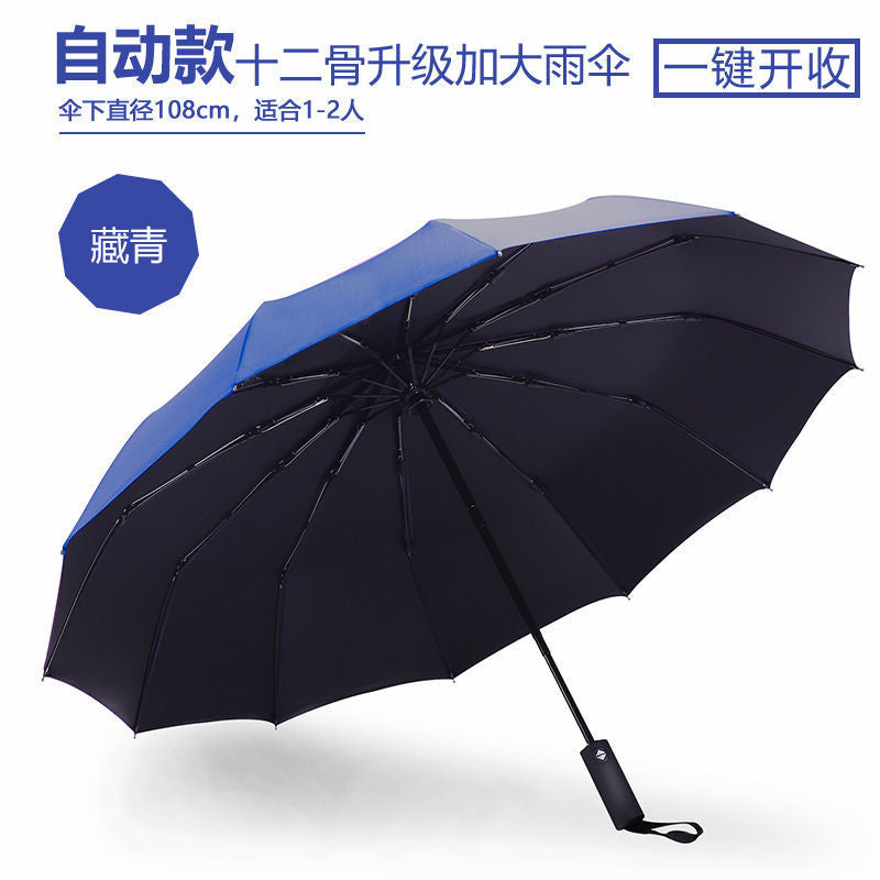 12-bone automatic umbrella rainy and sunny dual-use double enlarged reinforcement male and female business folding umbrella advertising LOGO printing