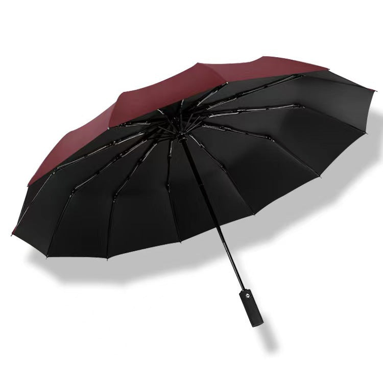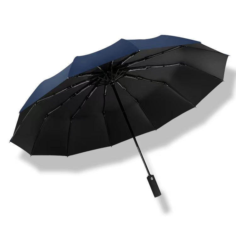 12 Bone Fully Automatic Three-fold Umbrella Black Glue Sunscreen Umbrella Sunny and Rainy Dual-use Increased Business Gift Umbrella Can Print LOGO