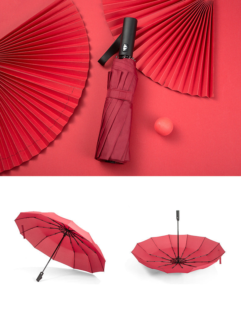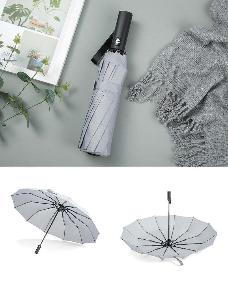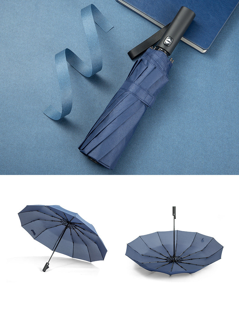 12 Bone Three-fold Automatic Umbrella Men's Business Folding Umbrella Advertising Umbrella Large Reinforced Factory Store