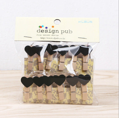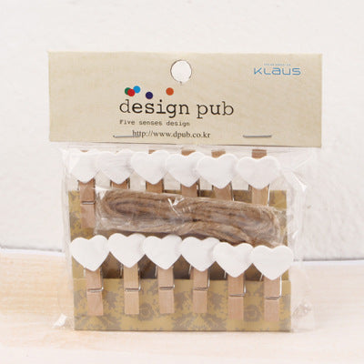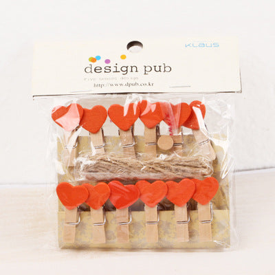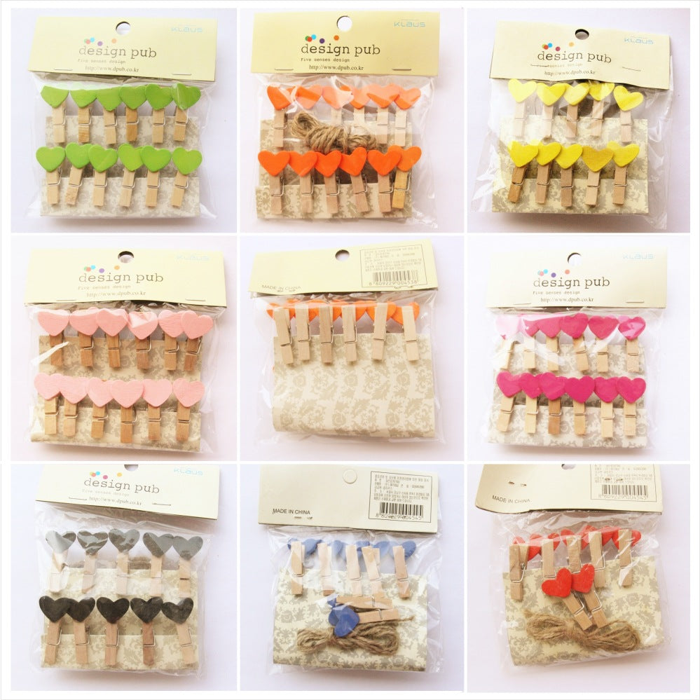 12 small wooden clips creative color love photo clip note clips 2 meters hemp rope photo wall decoration wedding