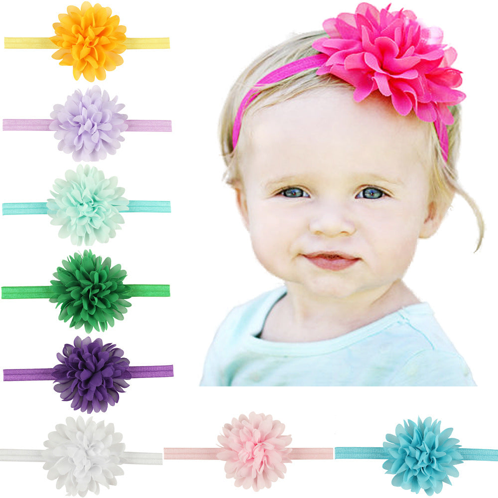 120D chiffon flower children's headband European and American baby 1.5cm elastic hair accessories new chiffon flower solid color headband
