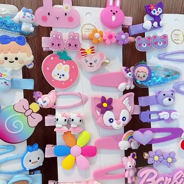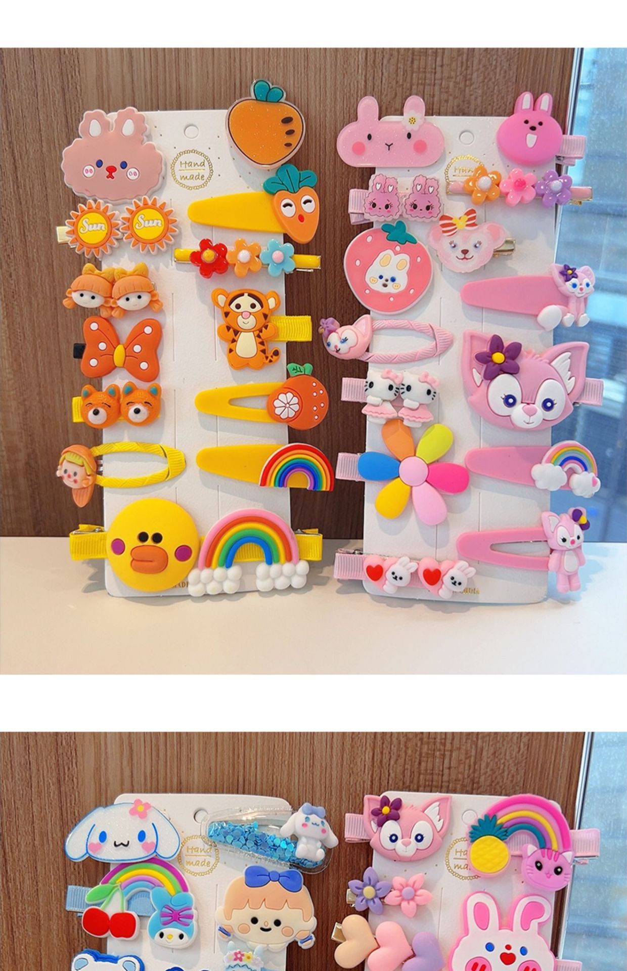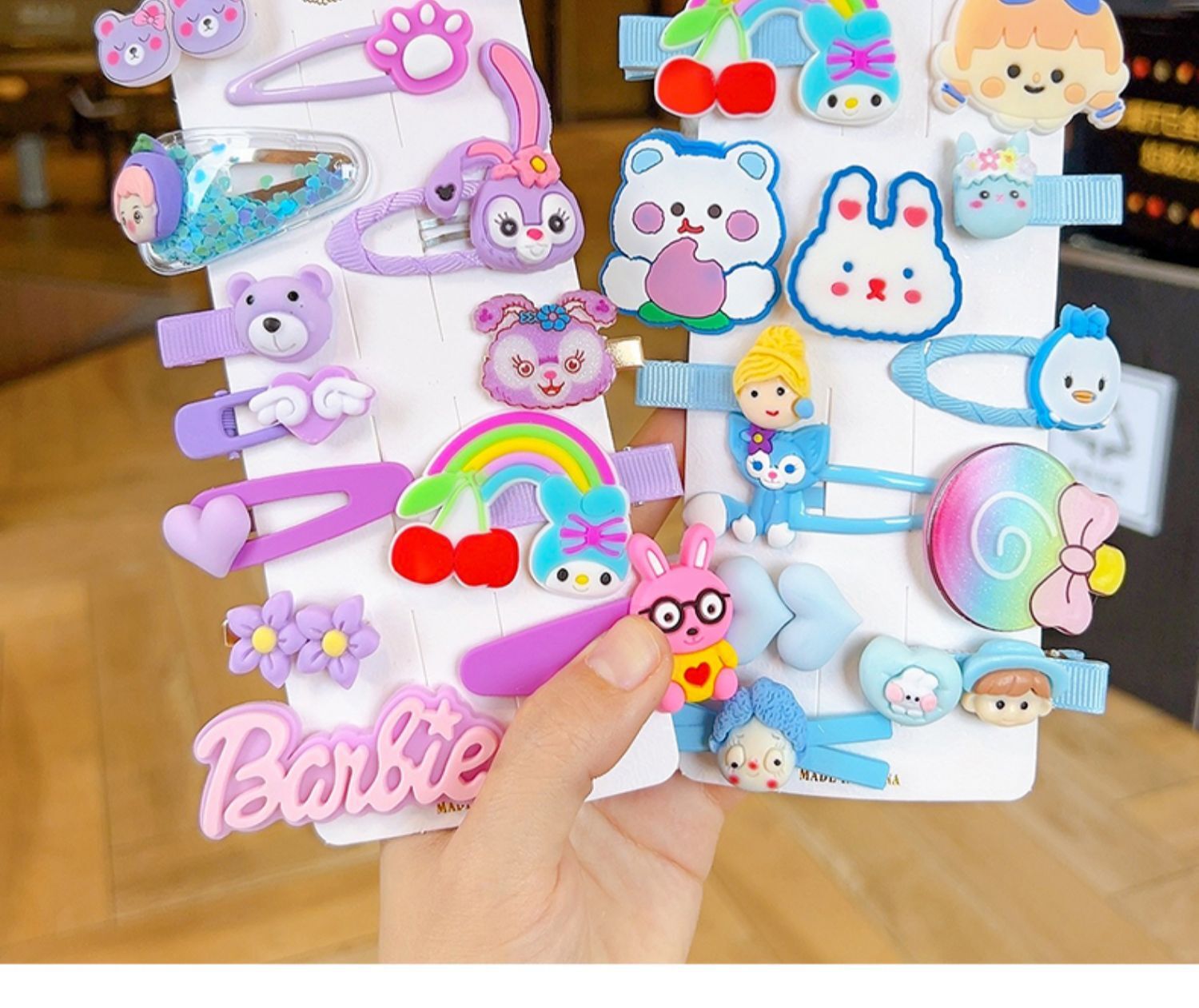 color: 1#Pink raccoon windmill hairpin-14pcs set, 2#Purple cat rainbow hairpin-14pcs set,3#Yugui dog lollipop hairpin-14pcs set,4#Pink rabbit rainbow hairpin-14pcs set,5#Little yellow duck rabbit hairpin-14pcs set