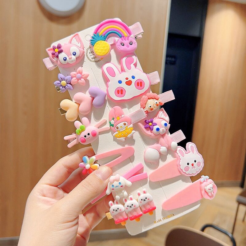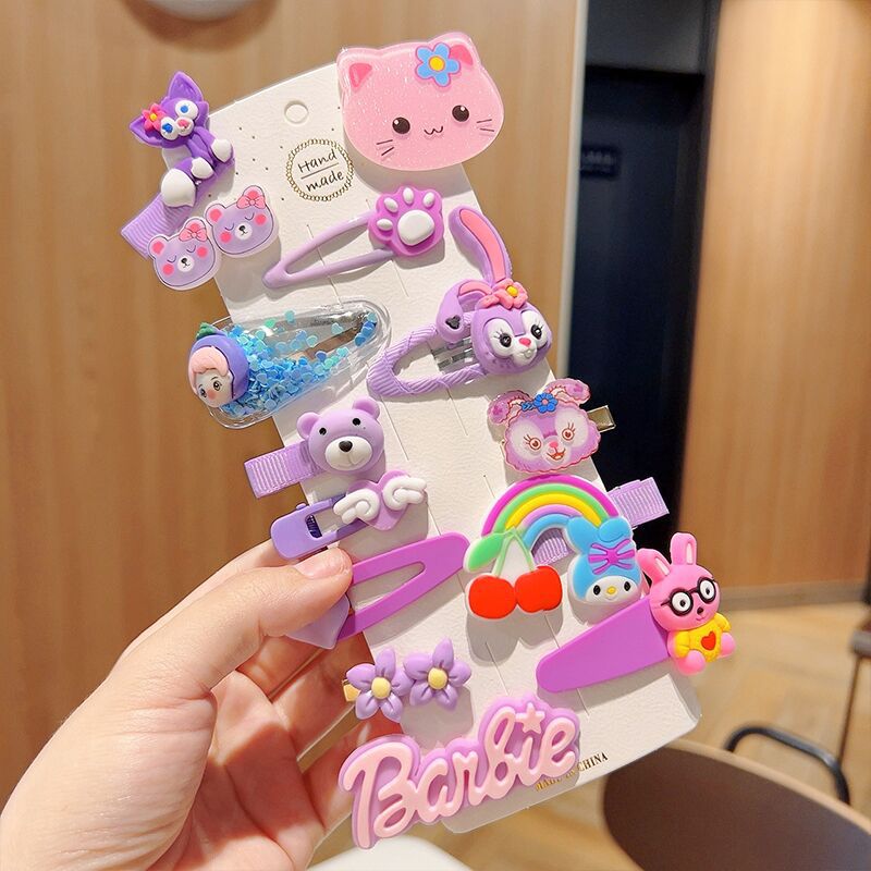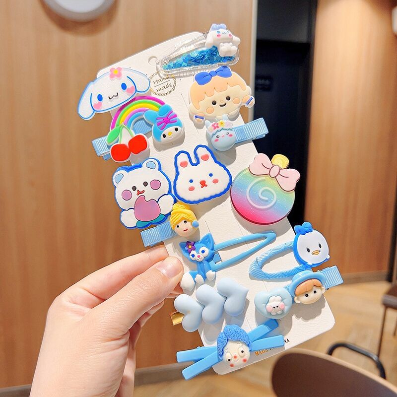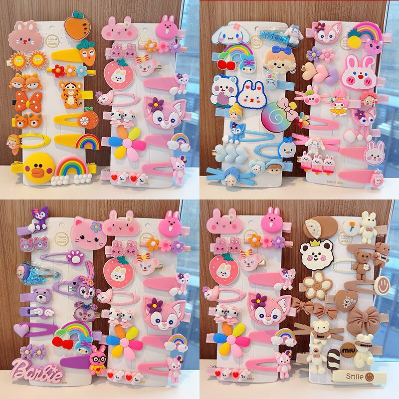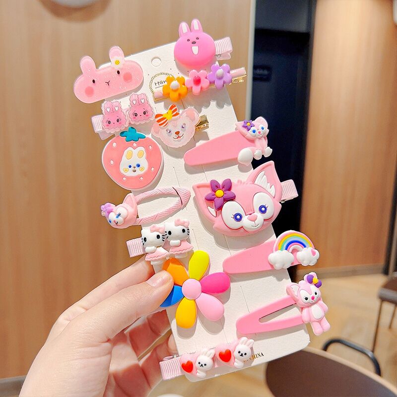 14-piece set~Hot selling children's hairpin cute cinnamon dog sweet cartoon suit female headdress Lingna Bell hairpin
